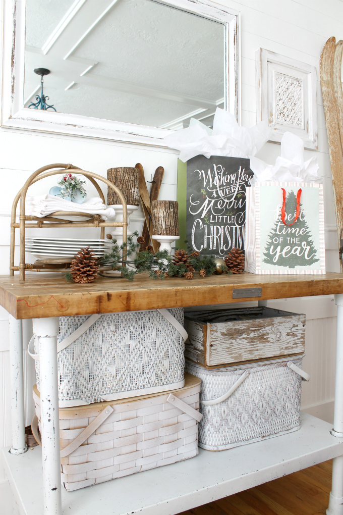 I pull out my grandma’s skis every Christmas as a little reminder of her. This year I placed them in our dining room.