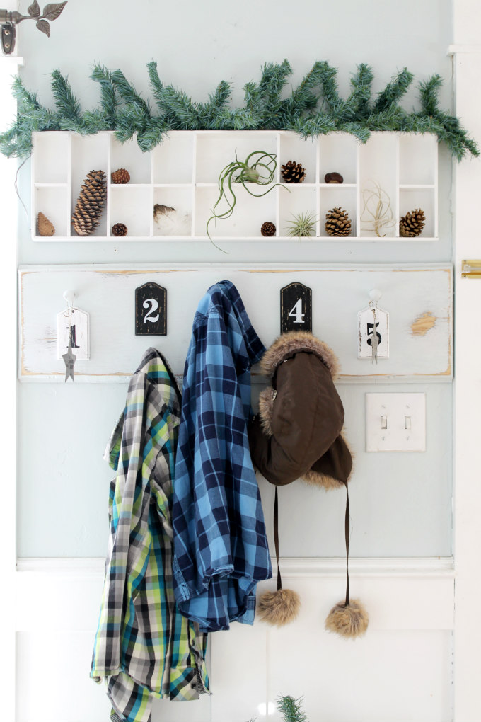 Next to the front door, I created a warm welcome for when you enter into our home. I’ve recently added This little bench to our entry way.  It opens up so it’s the perfect place to stash all of our winter wear. It was just what we were needing.
