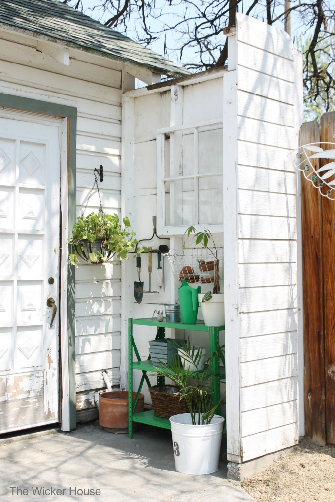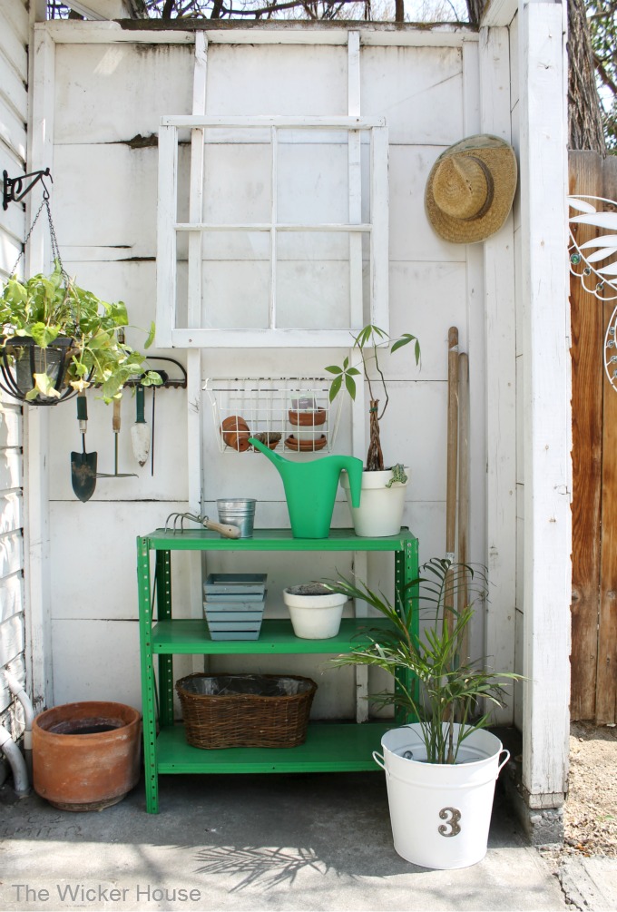 I created myself a little potting station in our backyard because I wanted to have a place to work on my potting and to store all of my garden tools.