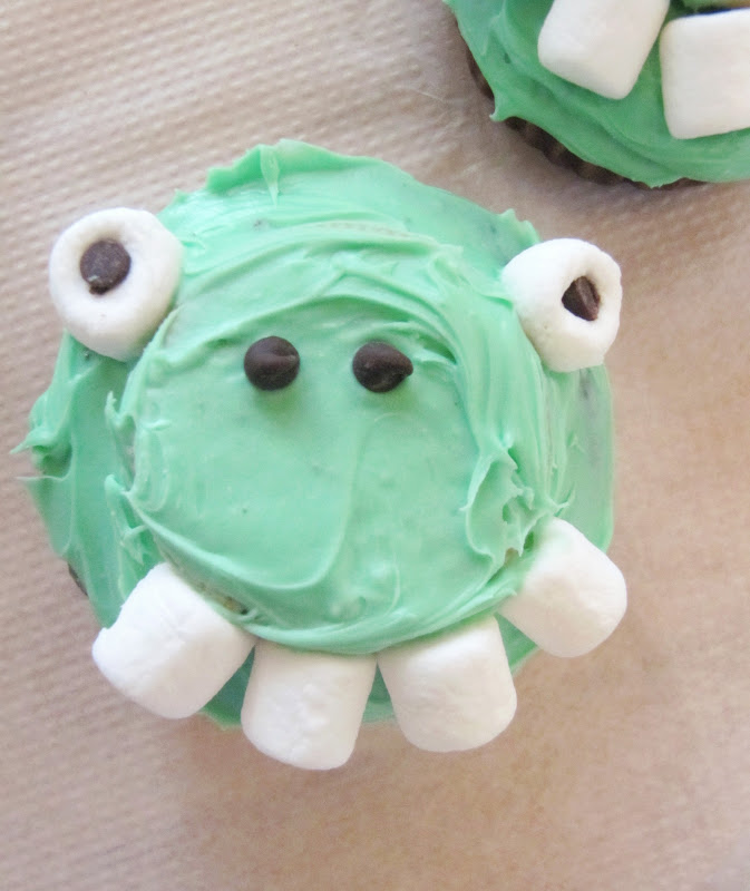 On the eyes, I pushed mini chocolate chips into the center of the marshmallows.