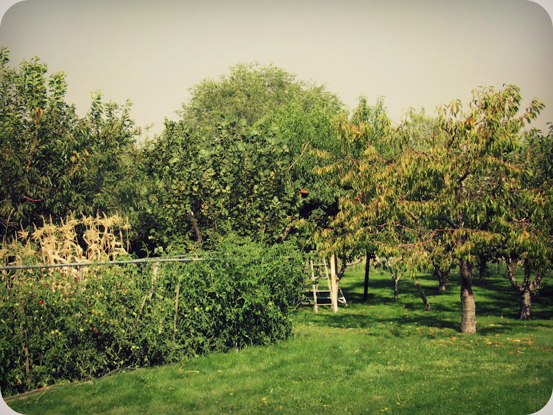 My husband Jake’s boss has his own fruit Orchard in his backyard. He has every fruit tree imaginable. He even has walnut, almond and plumcot trees as well as a pear tree that has several different varieties of pears on it, all in their own little sections. I was in awe.