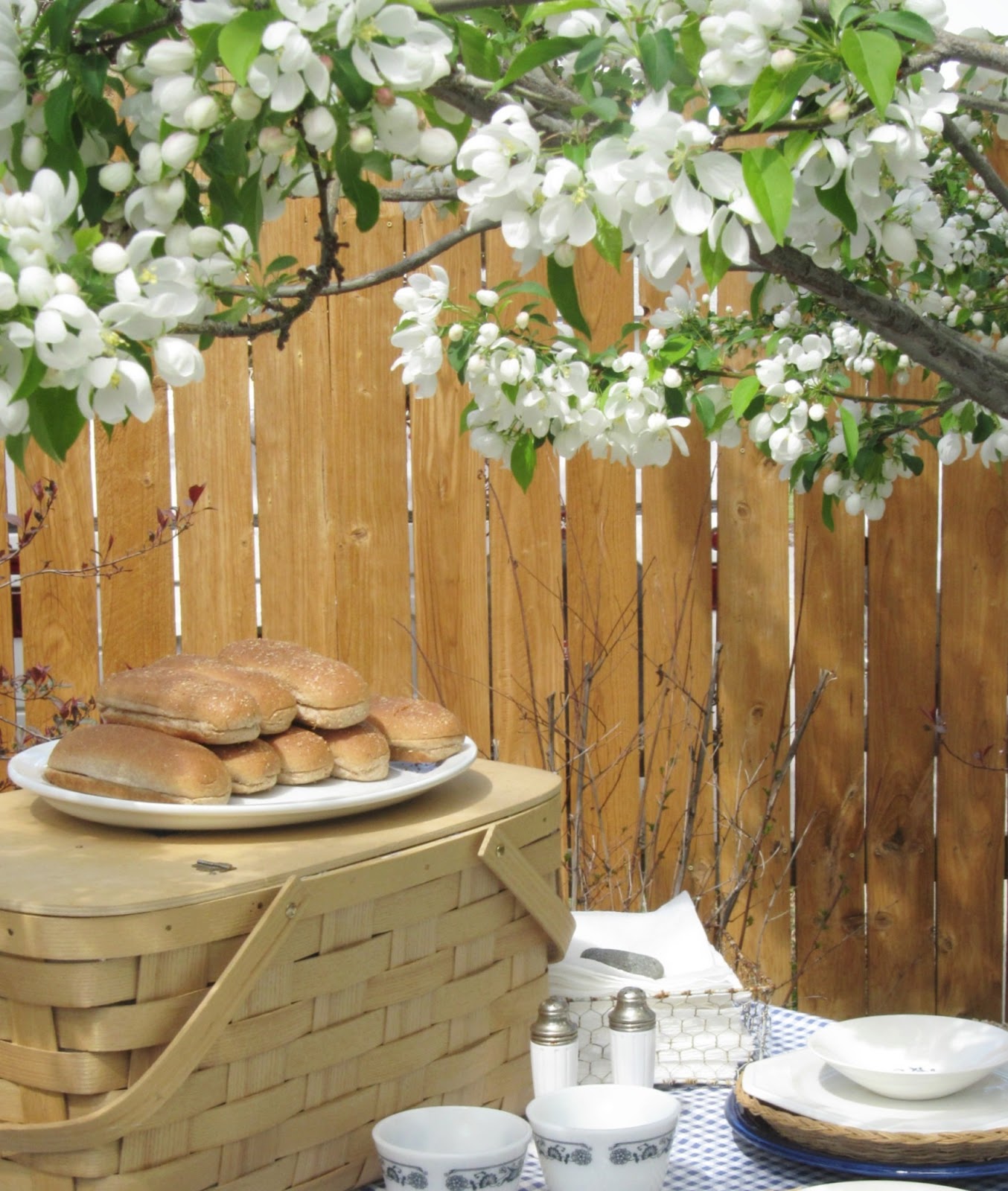I have a beautiful tree in my backyard that is in full bloom with white blossoms and so I thought it would make the perfect backdrop for my backyard barbecue.