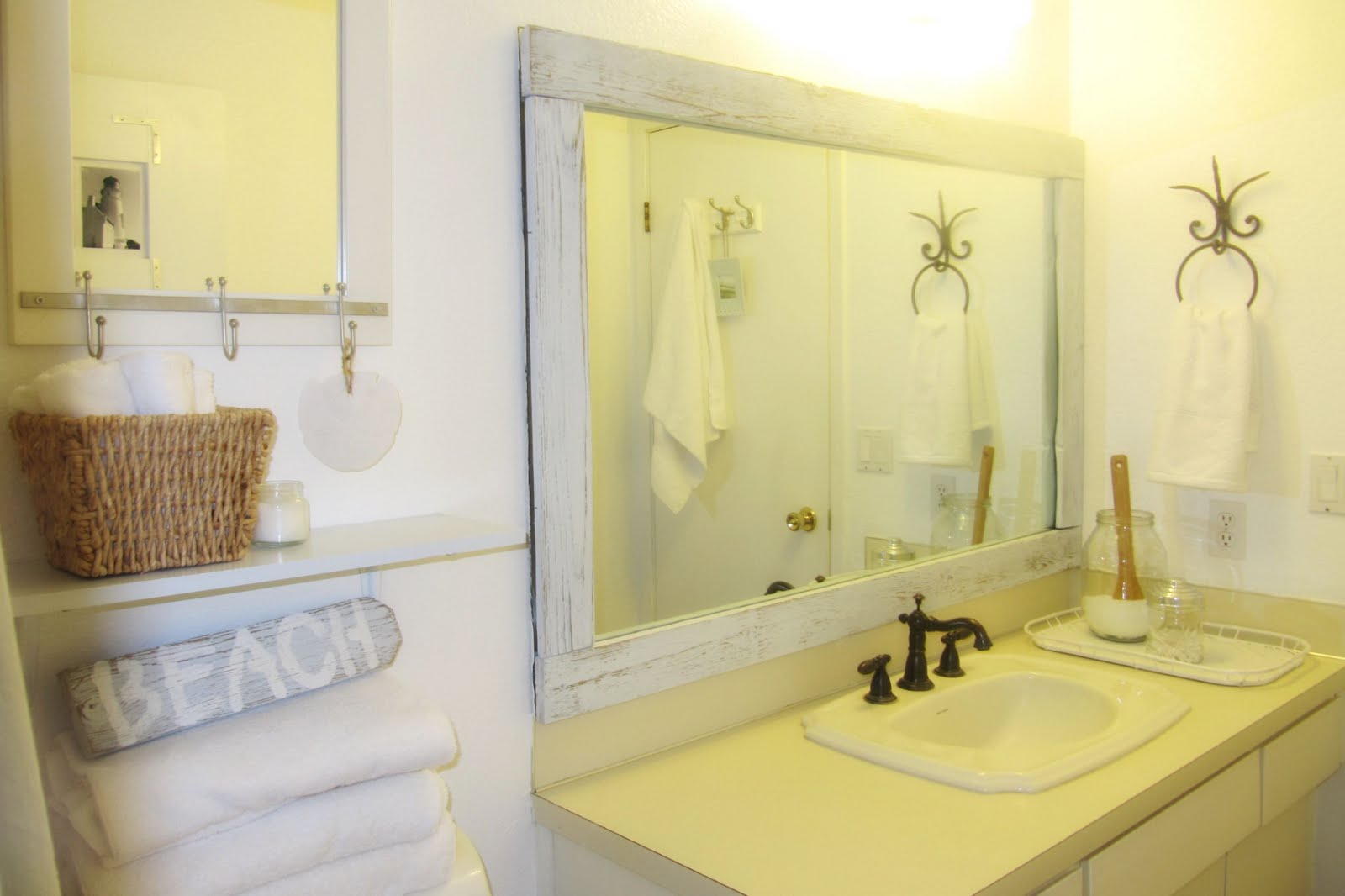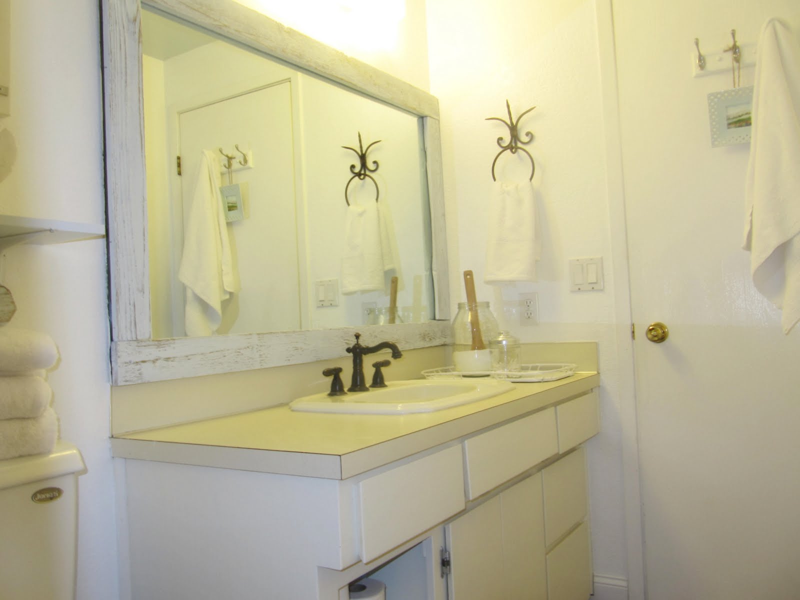 My Bathroom mirror BEFORE was a standard full size mirror you find in most bathrooms.