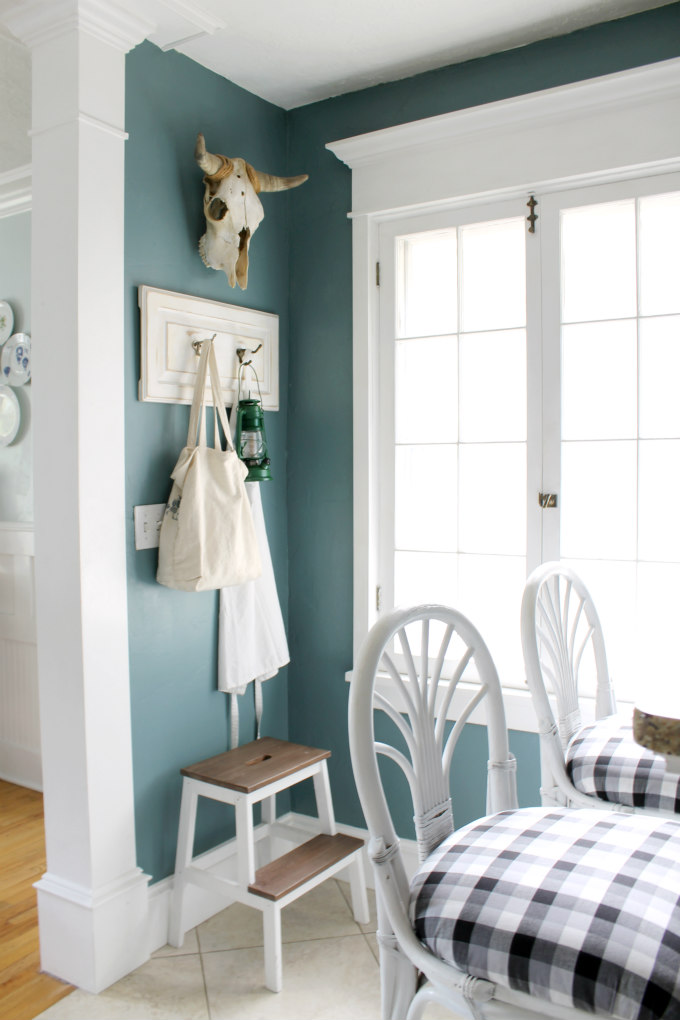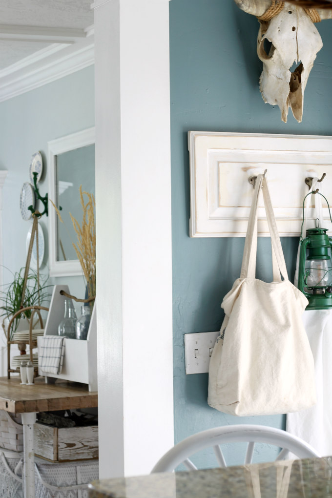 And I switched out our ship wheel wall clock for a bull skull, taking our kitchen from beachy to rustic. Now our kitchen flows better with the rest of the house.