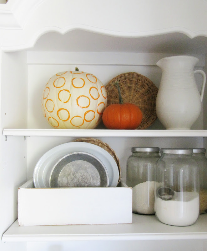 I placed my pumpkin on the shelves in my kitchen.