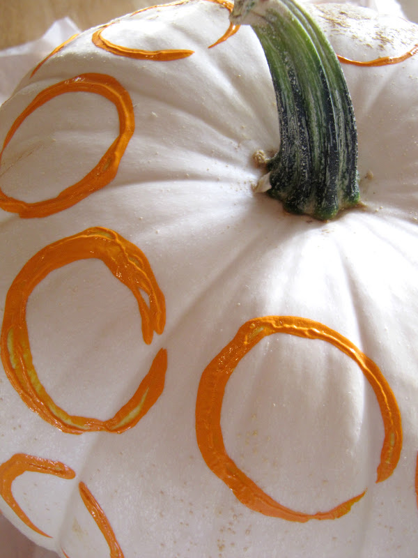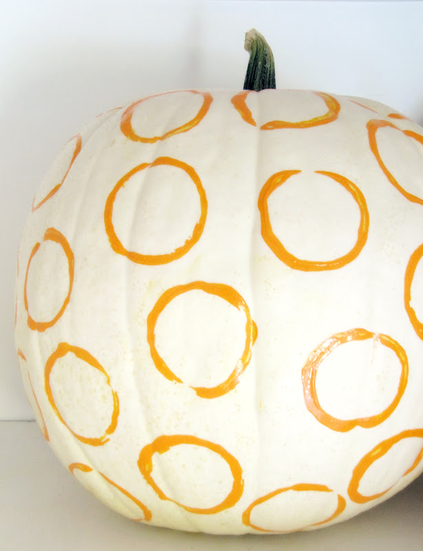 So I decided to paint orange circles onto my beautiful white pumpkin. I love the way it turned out and so I am going to show you how I did it.