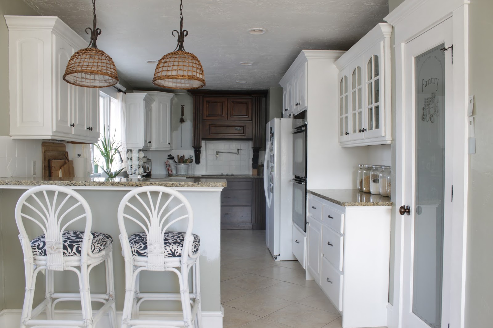 I love the new color of your kitchen. Although your kitchen looked nice with the old color, it looks more refreshing now. Having the majority of the cabinets white makes your kitchen look much bigger then it looked when some of the cabinets where brown. Itβs great that your kitchen now flows with the rest of your house.