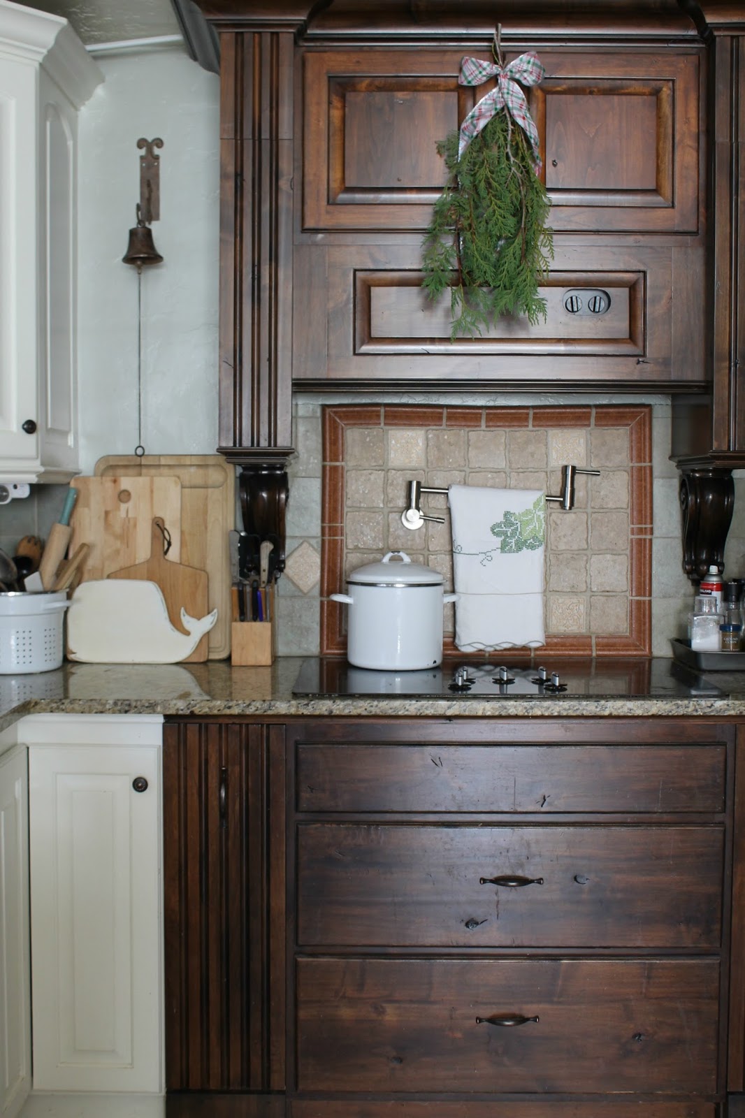 I just clipped some branches from a tree in the back yard and with it I created a swag for our stove.