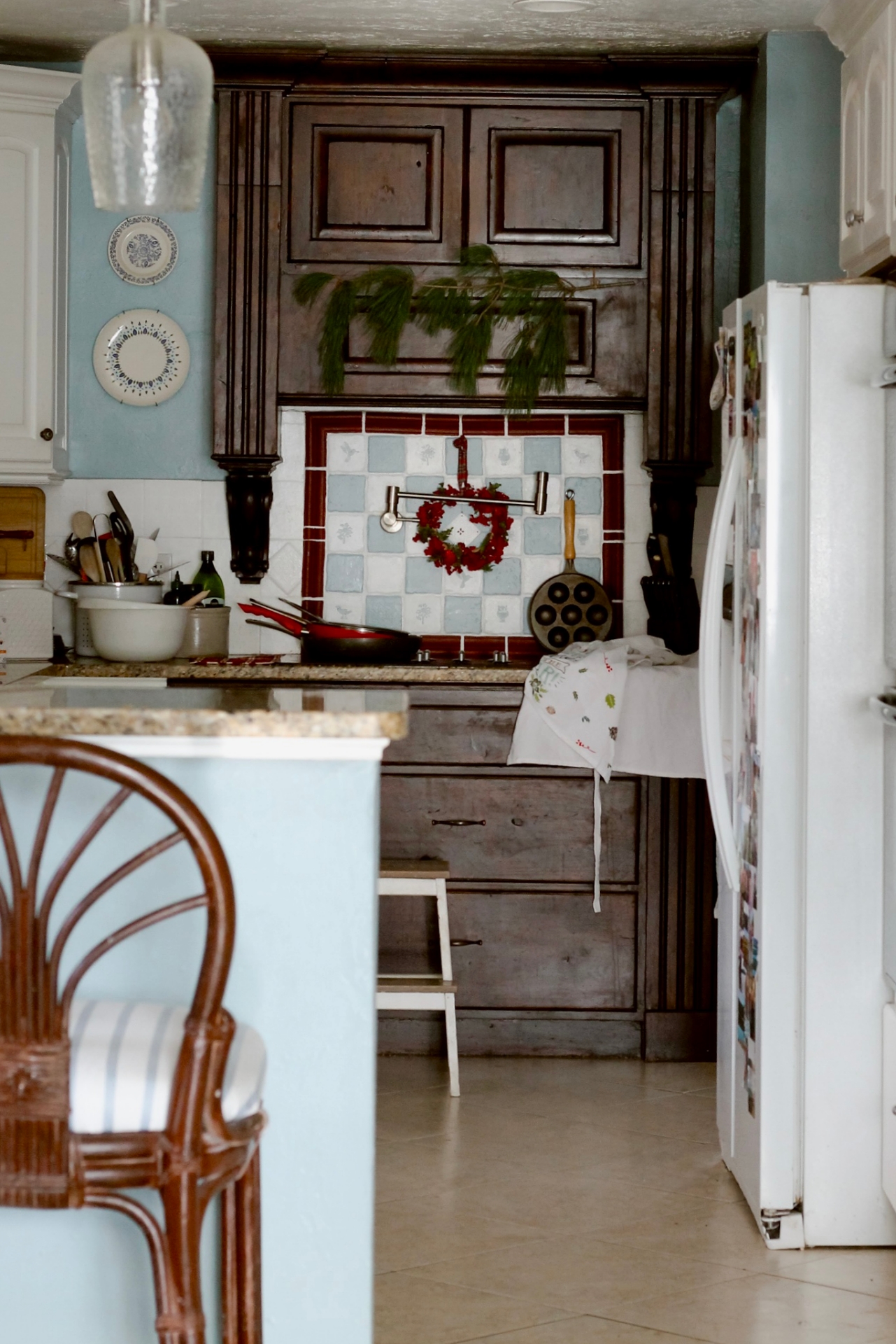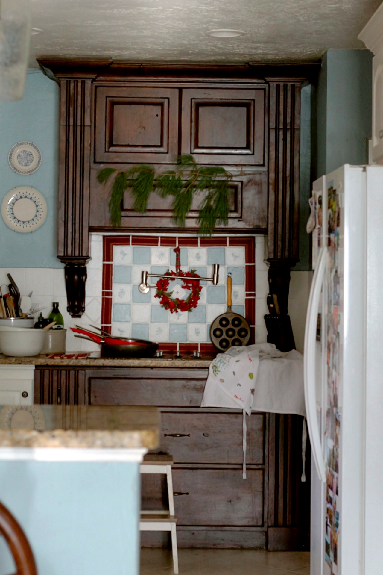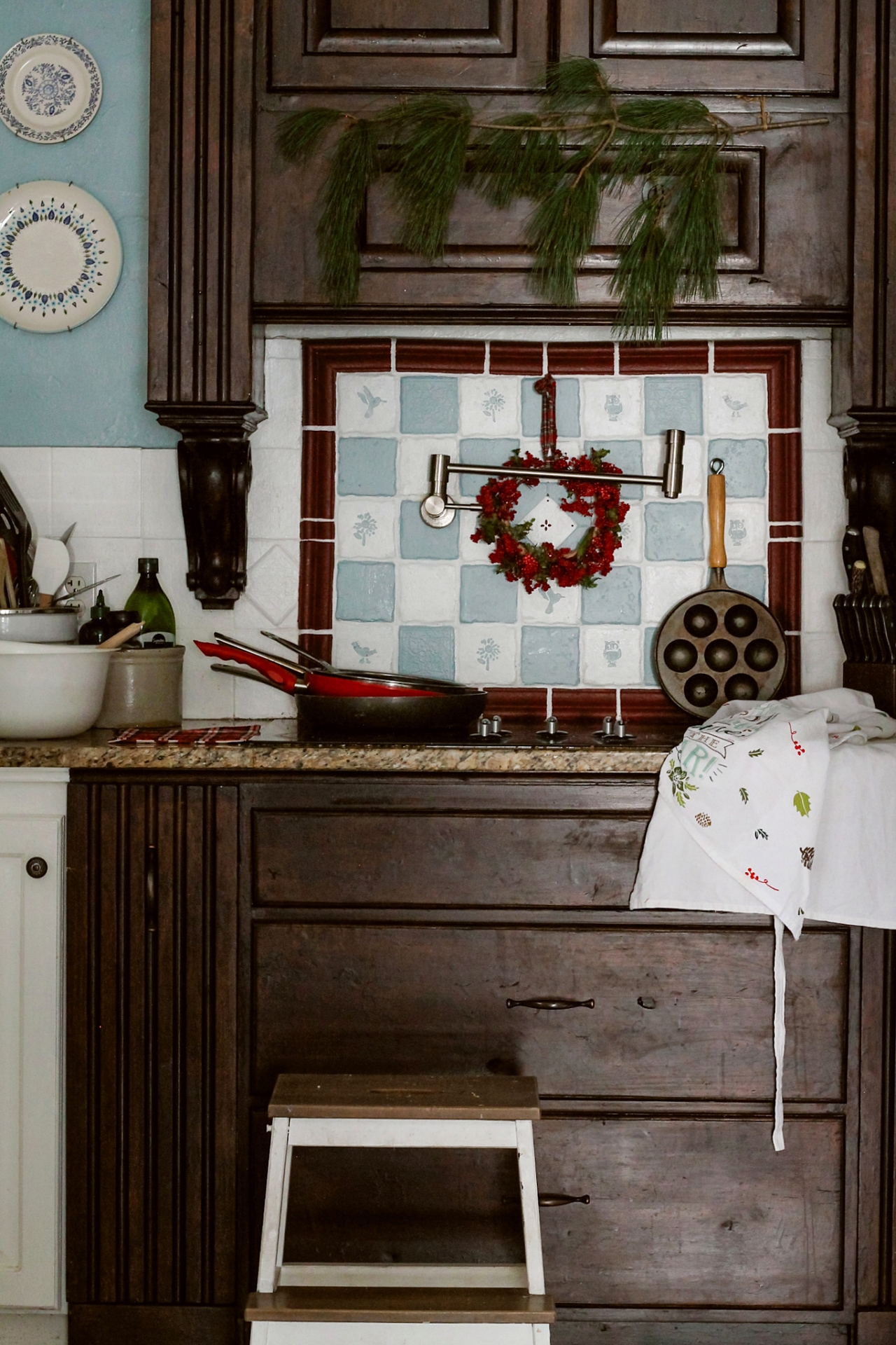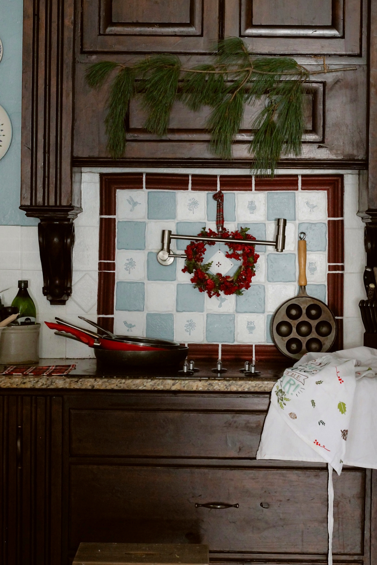 The little red wreath looks so great on top of the painted tiles. As you can see from the above picture, I’ve also gotten out our Aebleskiver pan because these little danish pancakes have become a Christmas Morning family tradition. Oh I just saw that they also make a Aeblesiver Waffle maker that might be ever better!