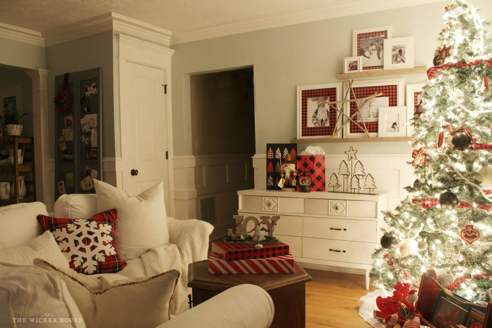 Oh my goodness!! Your home is absolutely beautiful with all the twinkling lights!! So many pretty things to look at and feel so cozy inside!! Love your shelves with the gingham picture mats….I am wanting to put some shelves up in our dining area this year, may have just found my inspiration picture!! Did you use a tripod to capture your photos and what settings did you use? I am terrible at capturing good Christmas tree shots!! Have a wonderful day and Merry Merry Christmas!!