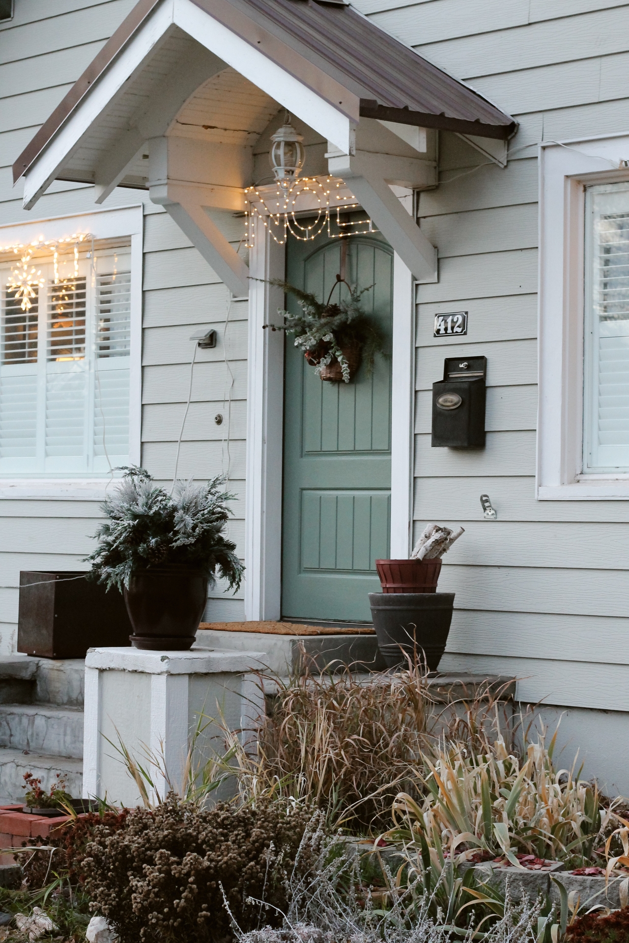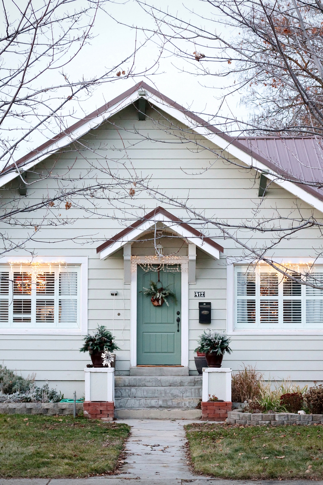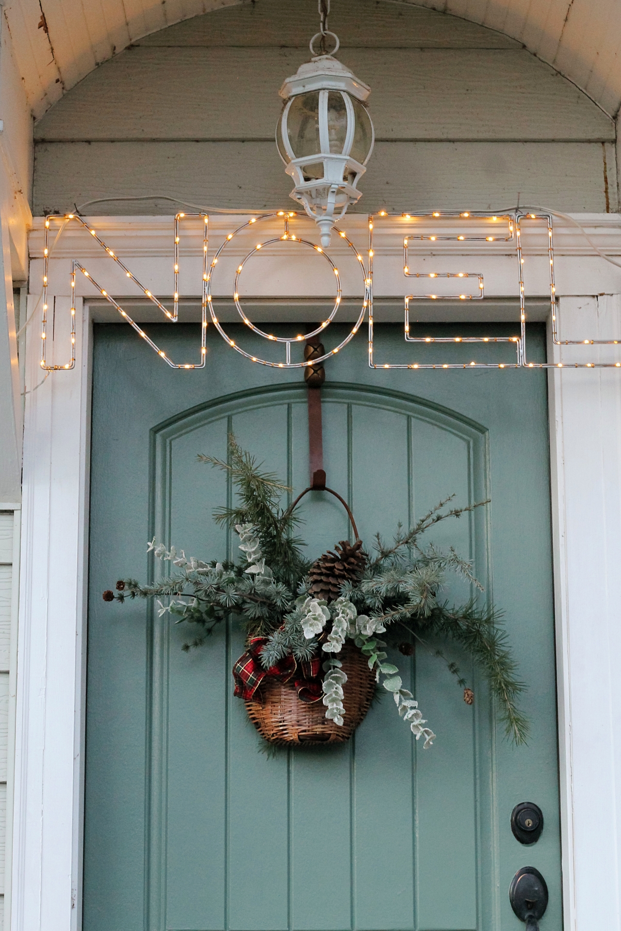 I’ve recently painted our front door for the 8th time, and I think this may just be my favorite color yet. The new door color also adds a pretty touch to my Christmas porch this year.