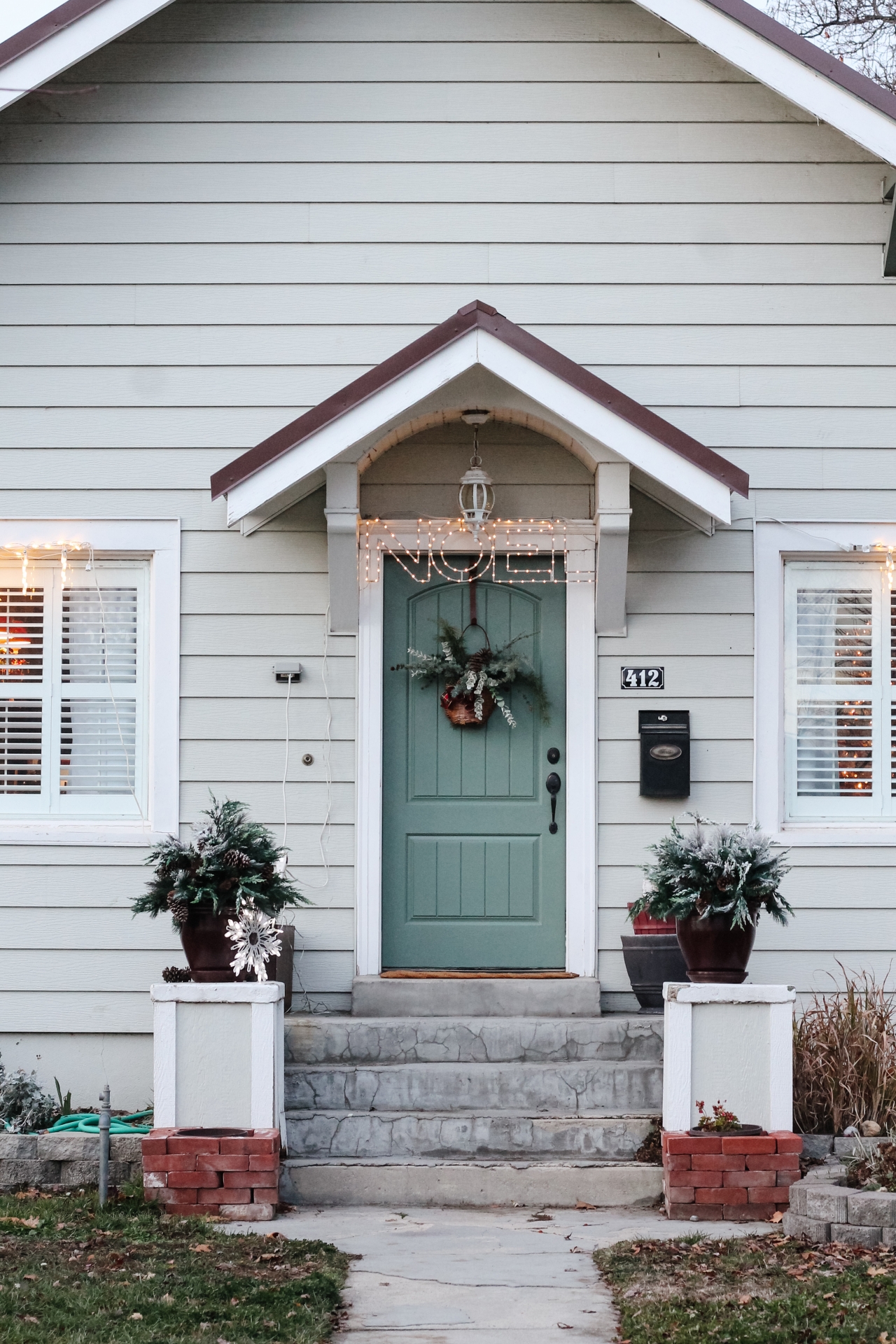 I got the lighted Noel sign, window snowflake lights, and both flocked faux bushes from Balsam Hill years ago. I’ve decorated with them every year since I got them. Balsam Hill has great products.