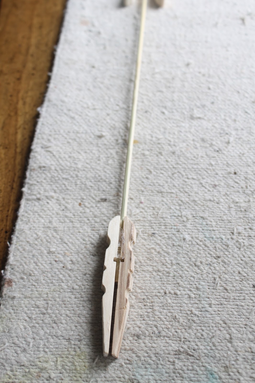 For the arrows tail, I glued two clothes pins onto the opposite end of the skewer.
