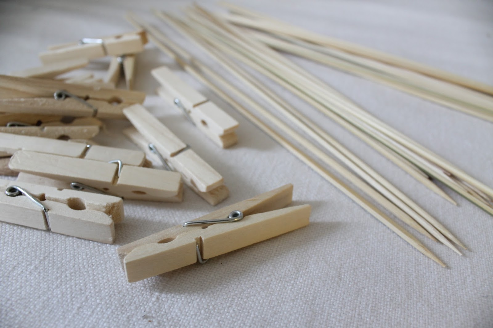 I started off with some clothespins and bamboo skewers.