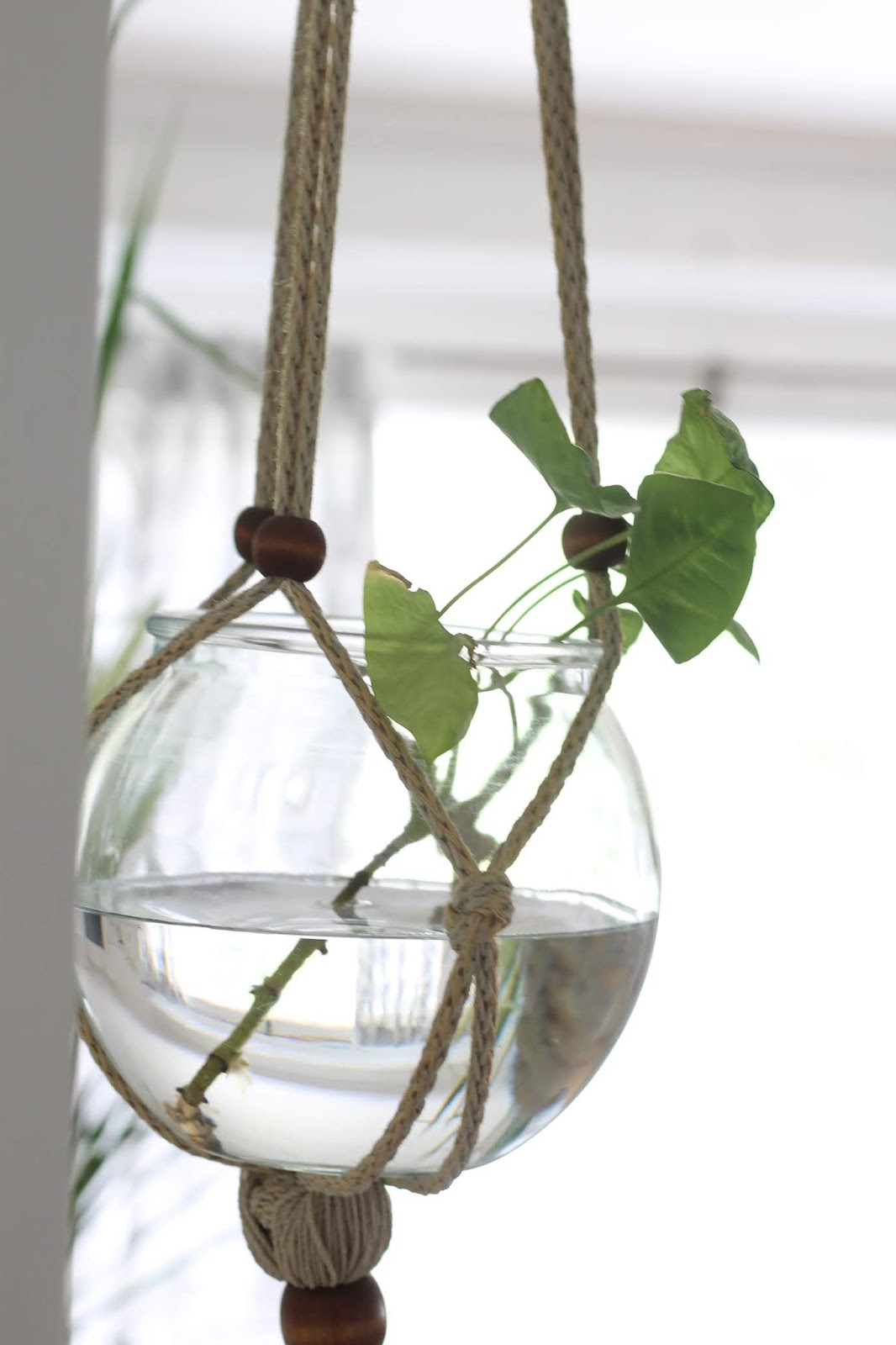 One of my favorite parts about the mantle is the hanging fish bowl.  I was inspired after seeing something similar onPinterest.  I’m kinda thinking of getting a fish now to place in the bowl, but for now I have a plant that is also rooting in water.