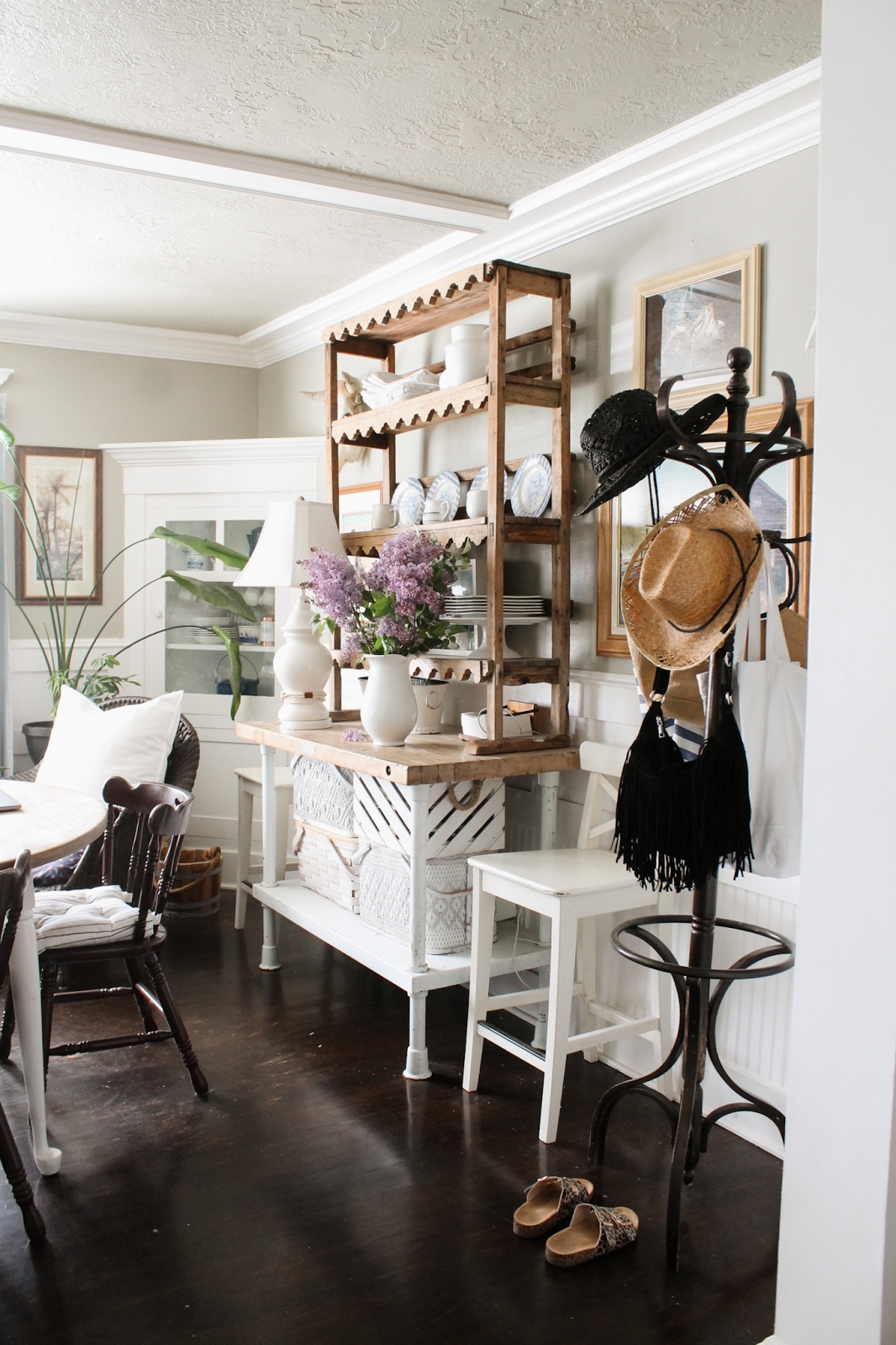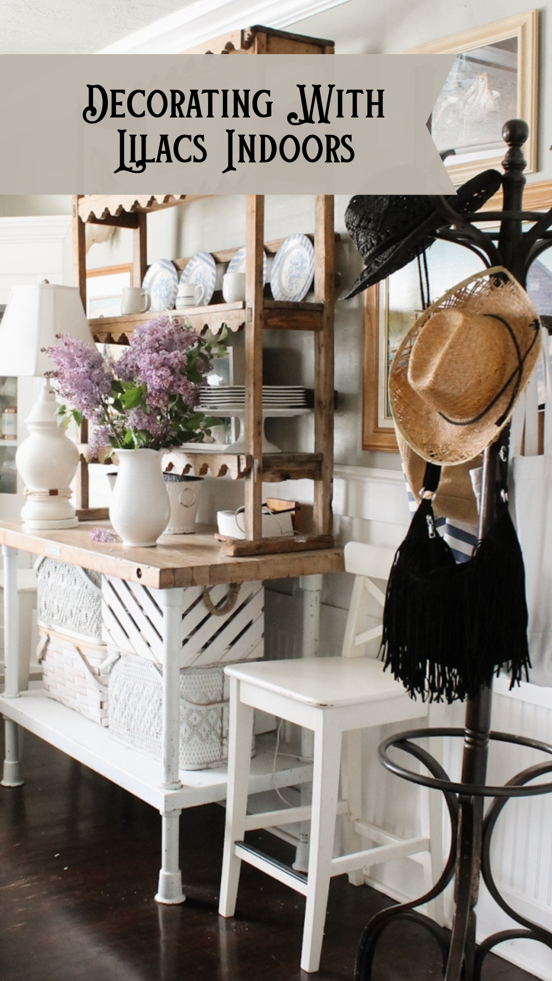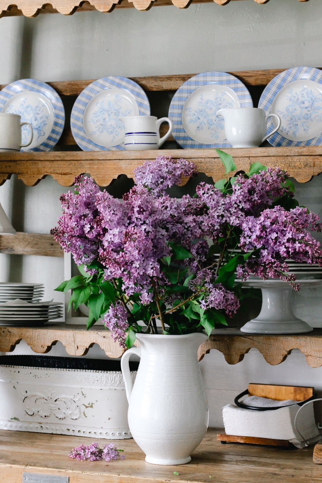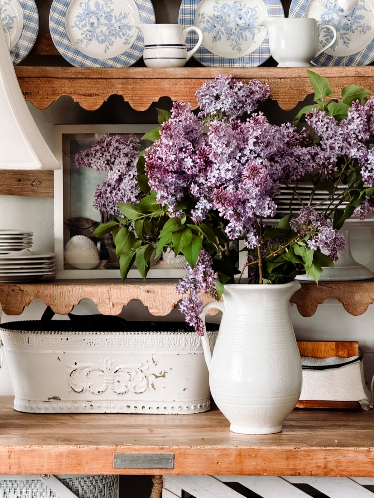 One of my favorite ways to decorate for spring is by bringing fresh flowers indoors. I recently clipped a few beautiful branches from my mother-in-law’s lilac tree and placed them in a white pitcher in our dining room. The soft purple blooms and fresh greenery instantly brightened the space and made the whole room feel light, airy, and full of spring.