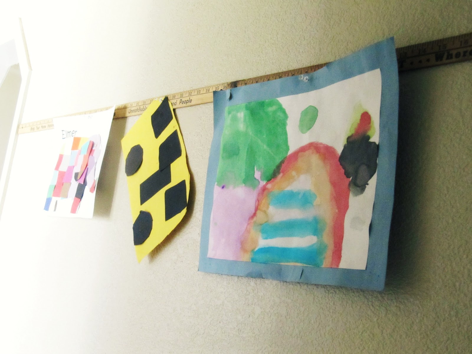 Then using thumb tacks, I am able to hang all of the kid’s artwork onto it.