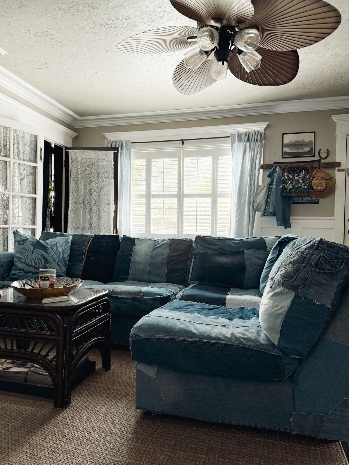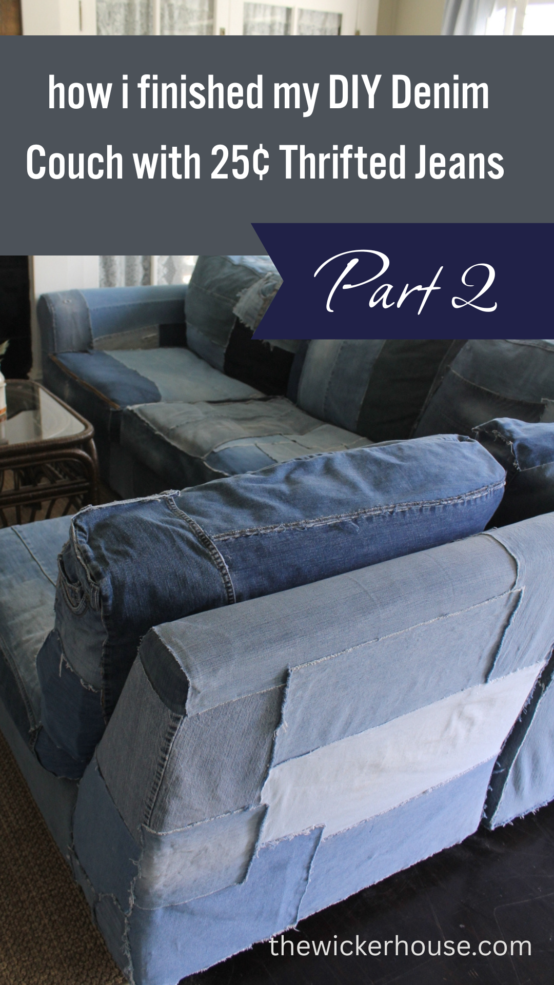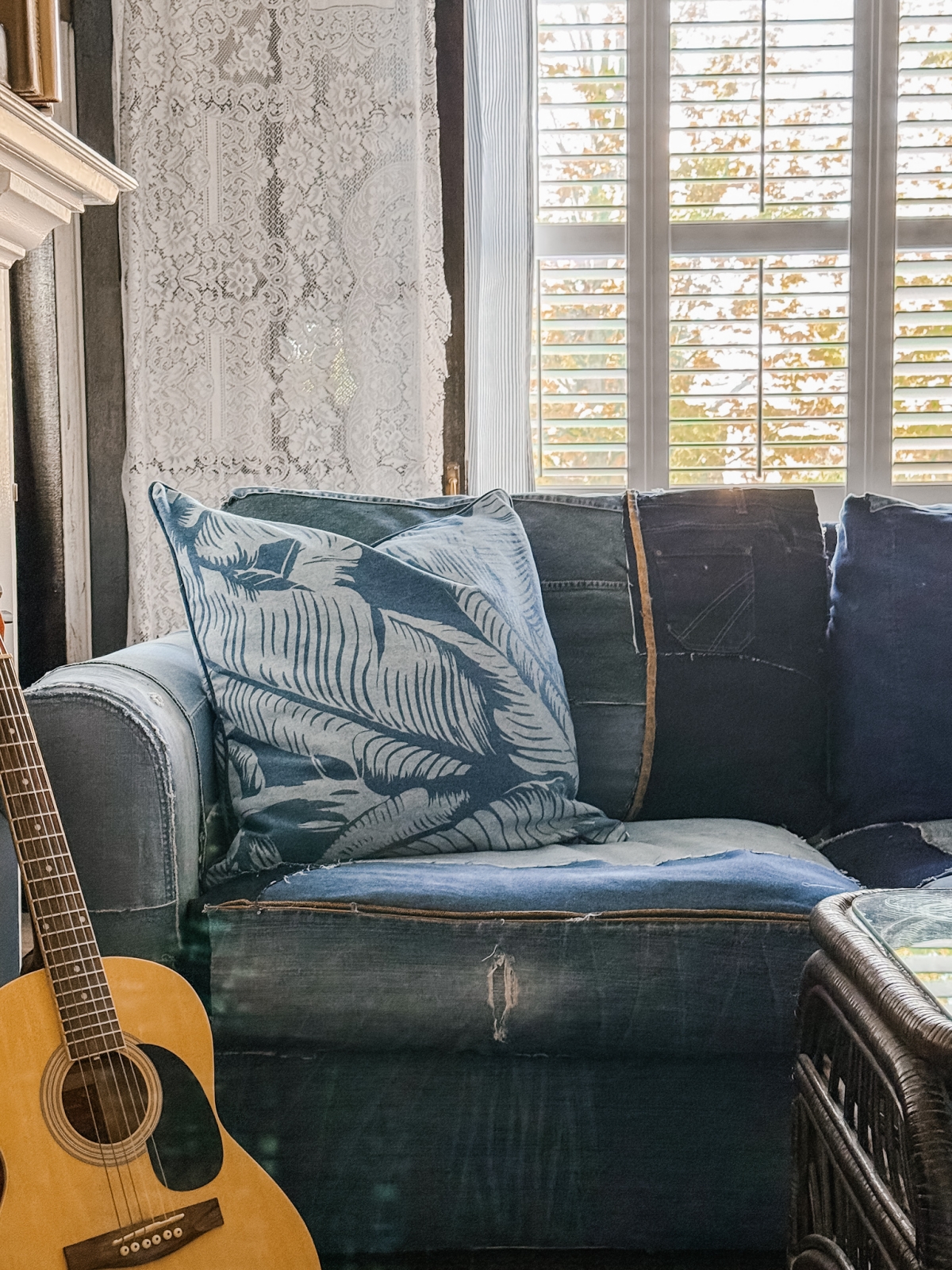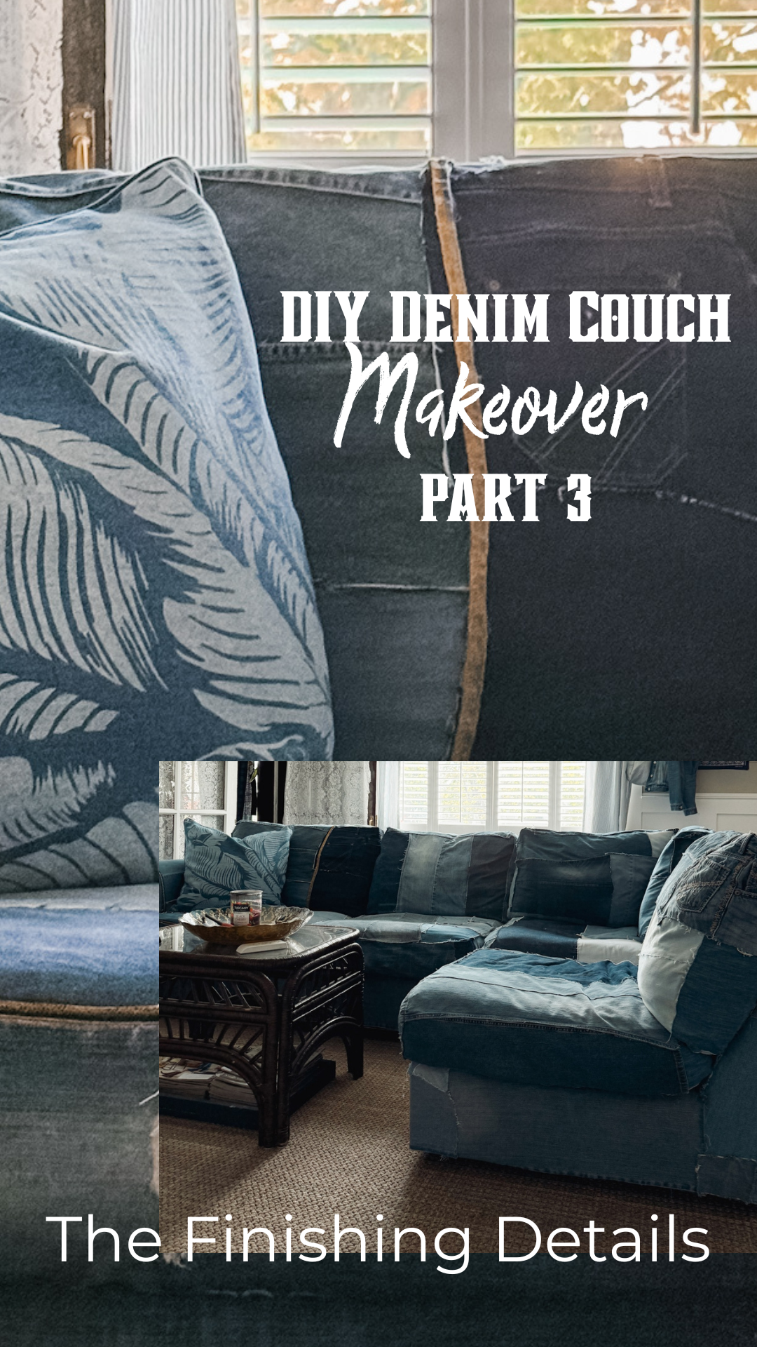 In Part 1 of this project, I shared how the idea for my DIY denim couch first came about and how I began attaching the denim to the frame and cushions. In Part 2, I finished covering the couch by adding denim to the back cushions, which really helped the whole piece come together. Honestly, I didn’t expect there to be a Part 3, but after making a few changes and adding some denim trim details, the couch has evolved a little more since I last shared it. I thought it would be fun to show you the small updates and finishing touches that made this one-of-a-kind couch feel even more complete.