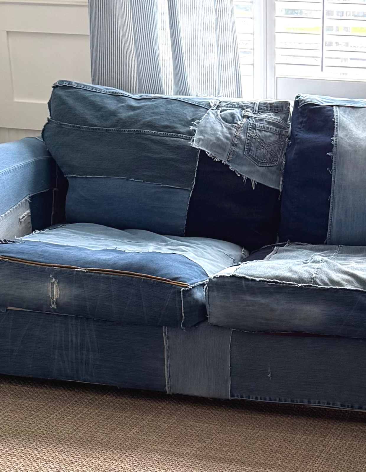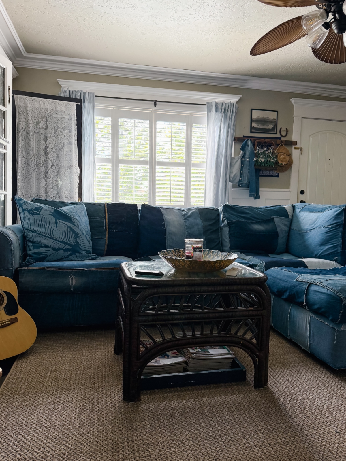 After these last few little changes, I can honestly say this DIY denim couch finally feels complete. What started as a simple idea to cover a worn couch turned into one of the most fun and creative projects I’ve ever done. I love all the different shades of denim, the textures, and the little details that make it completely one of a kind. It’s comfortable, unique, and full of character, and I’m so happy to have it in our home.