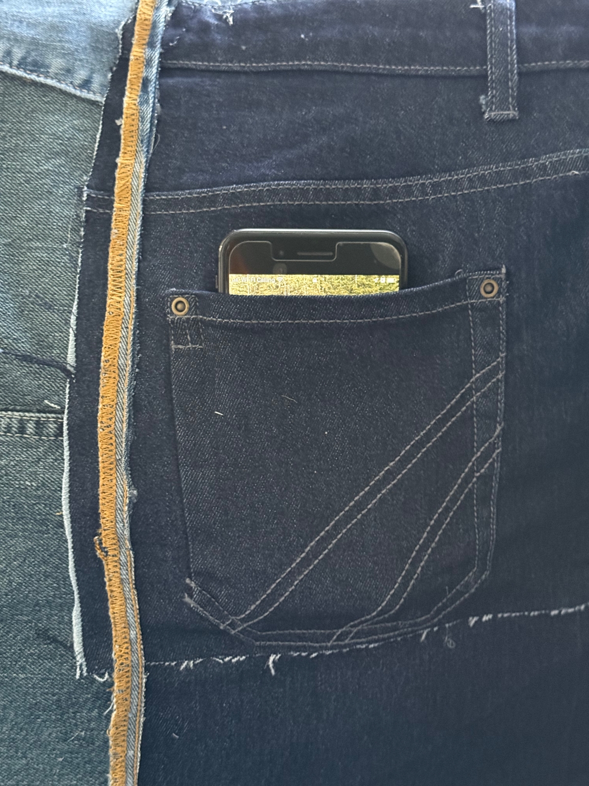 So I removed the pocket area and found a better piece of denim to replace it with. Now I just want to mention that it was a little difficult to remove. Which was a really good thing, because it reassured me that the hot glue was attached very strongly and should not be an issue later on.