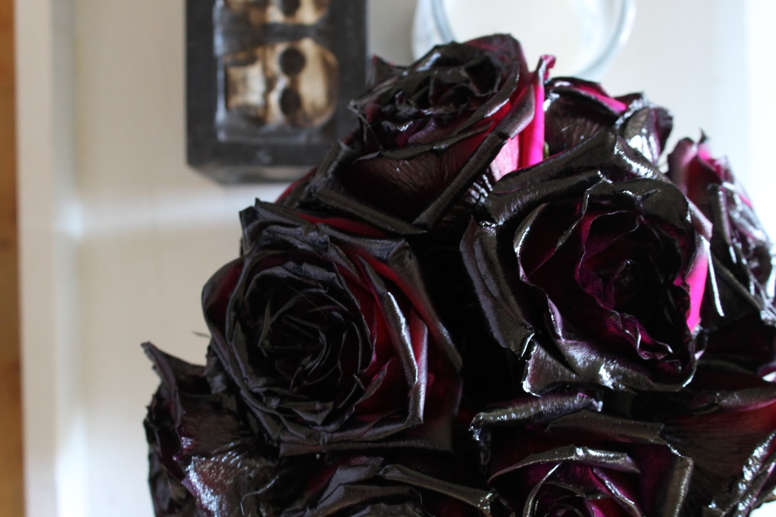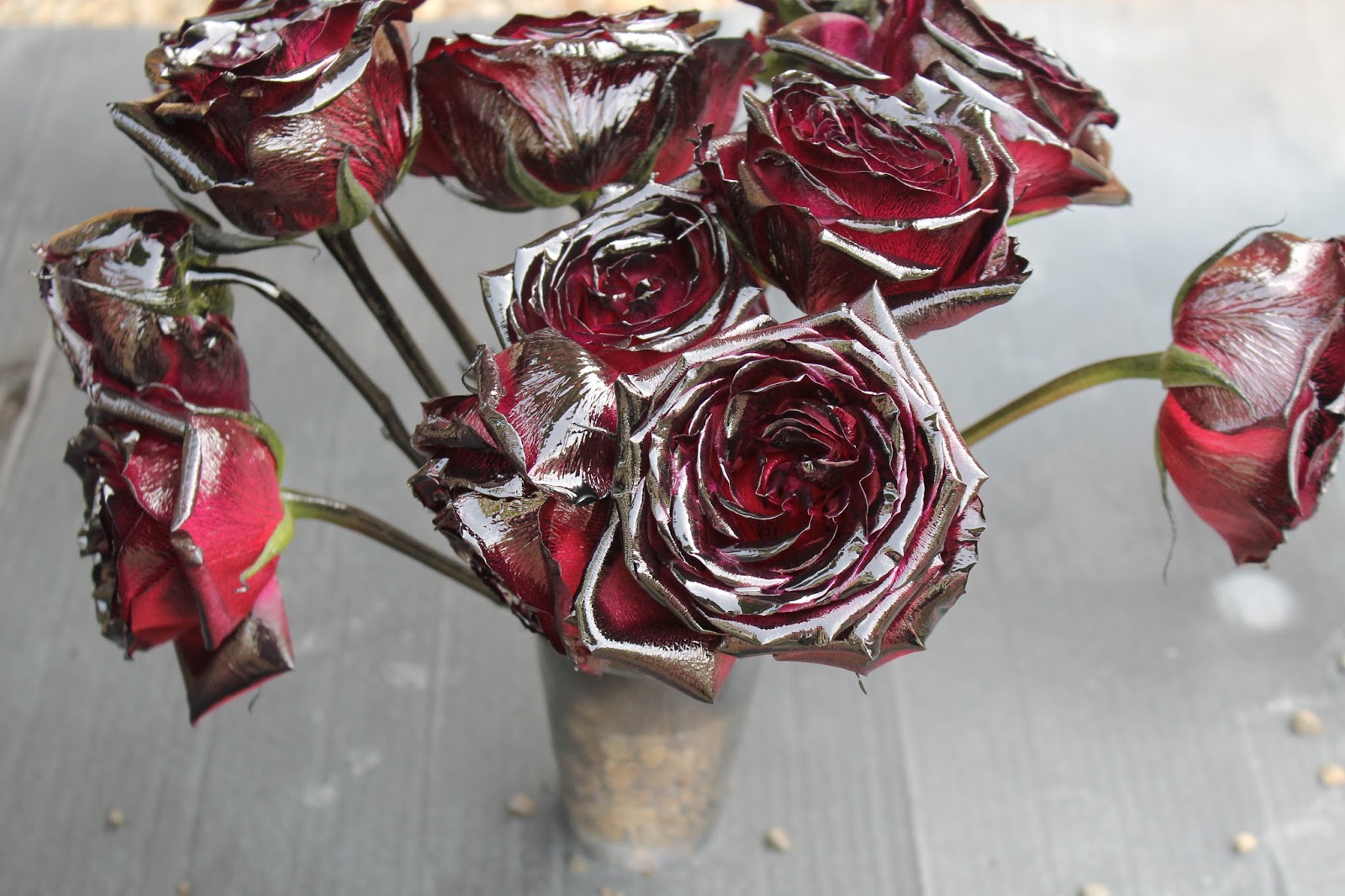And then while I had the black spray paint out, I decided to spray some roses as well.