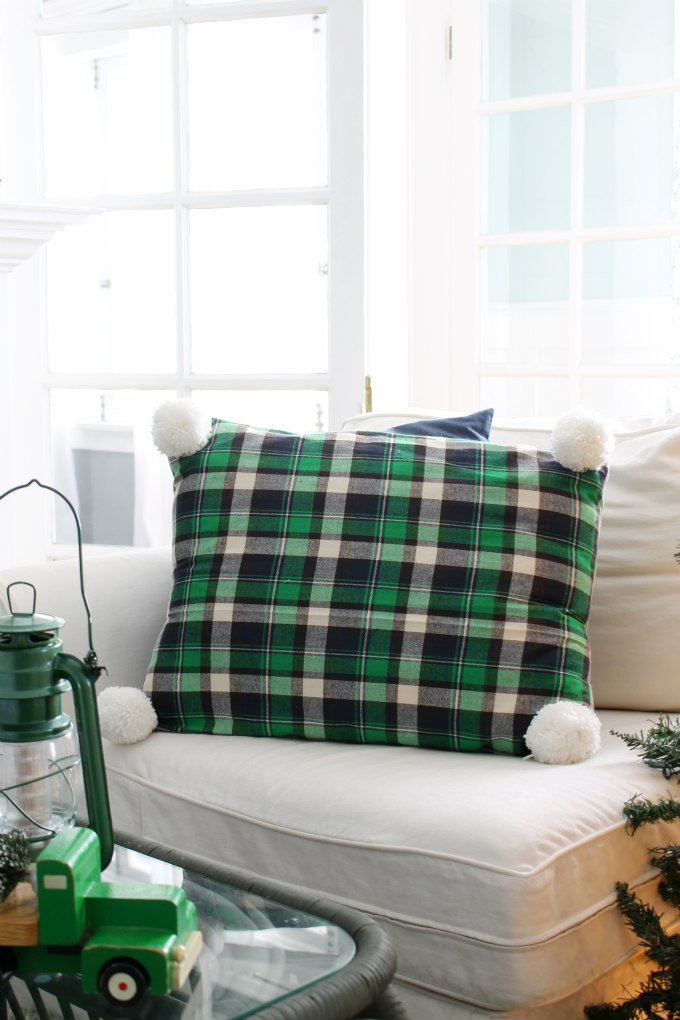 Once upon a time, like a few weeks ago, there was a green plaid pillow at a popular store that I wanted. And every time I went to that store, I eyed that pillow. I wanted that pillow, and I wanted a blue coordinating pillow to go with it. But those pillows were 20 dollars a piece, and yes, that’s a decent price to pay for a pillow, but I really just didn’t want to spend money on holiday decor. So instead I made a pillow. And in the end, my pillow turned out to be even cuter than the one in the store.