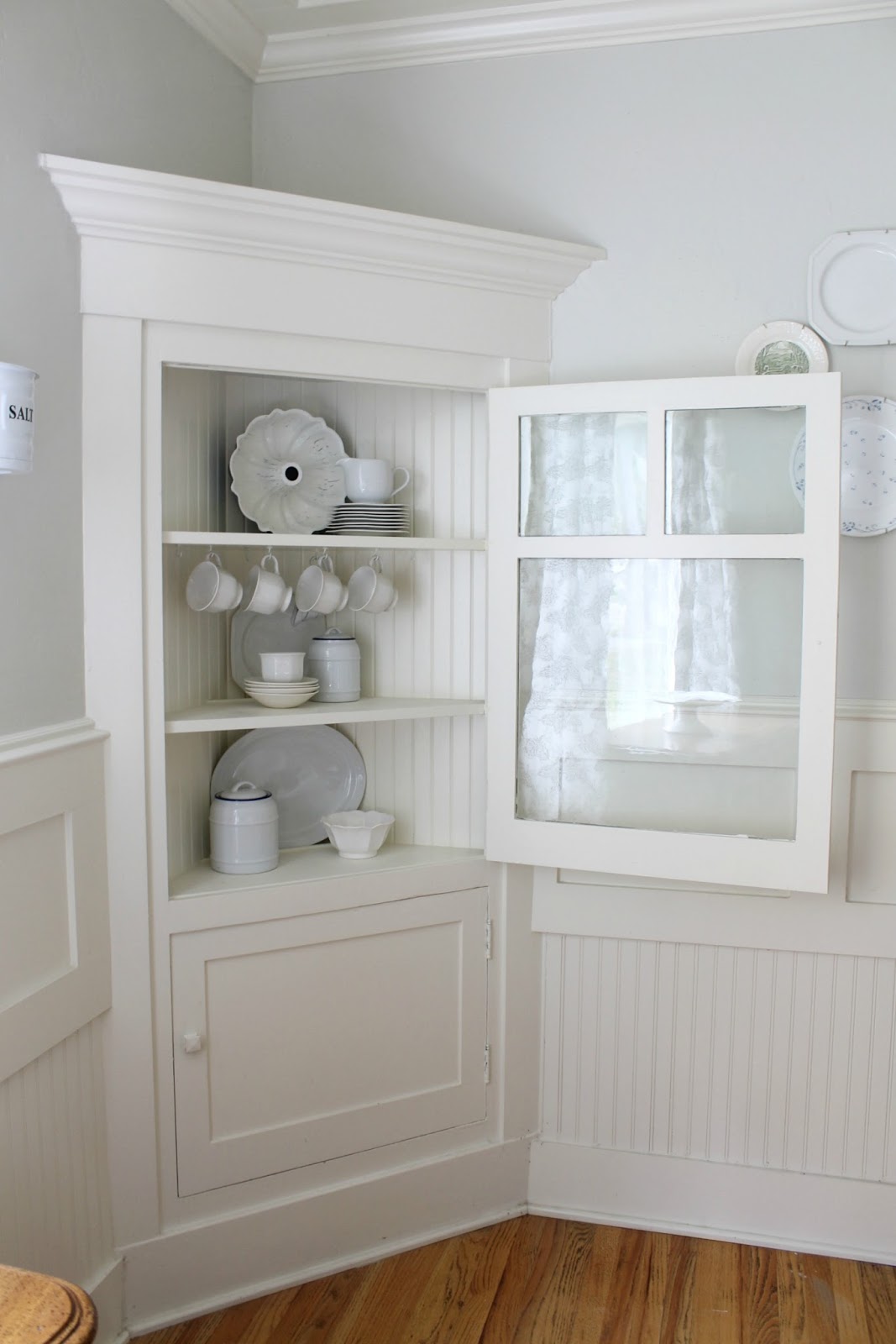 One of my favorite parts about the room are these corner hutches. Original to the 1924 home.