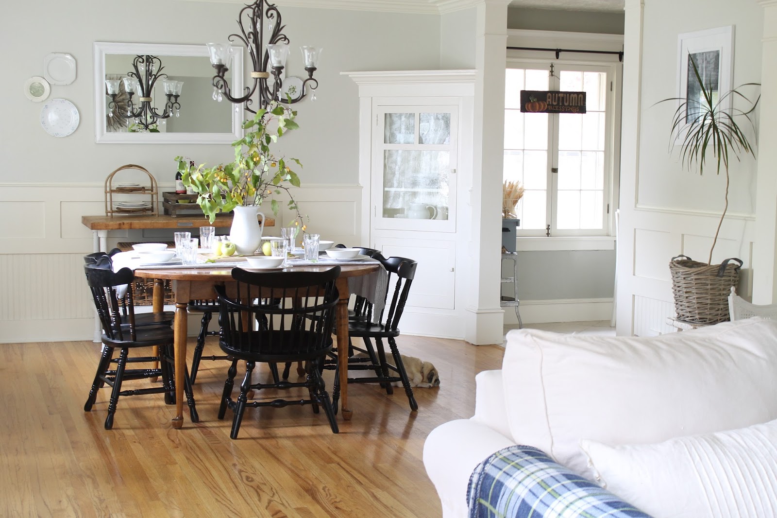 Well I love your muted decor… Huge fan! And I think we share the same wall color, Grey Owl, if I am not mistaken….so I wouldn't change a thing ! I am still enjoying fall decor at my house too. It's one of my favorite times of the year.