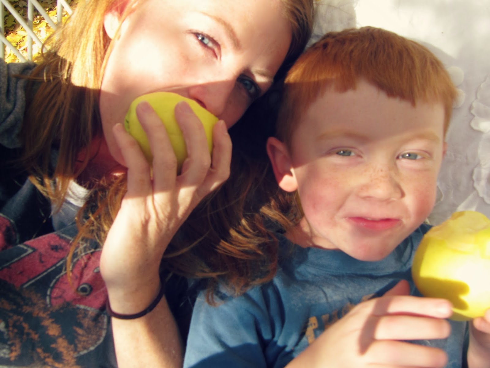 Once I was finished snapping these pictures, Jax and I cuddled on the wicker, eating apples and laughing while leaves kept falling down on us.