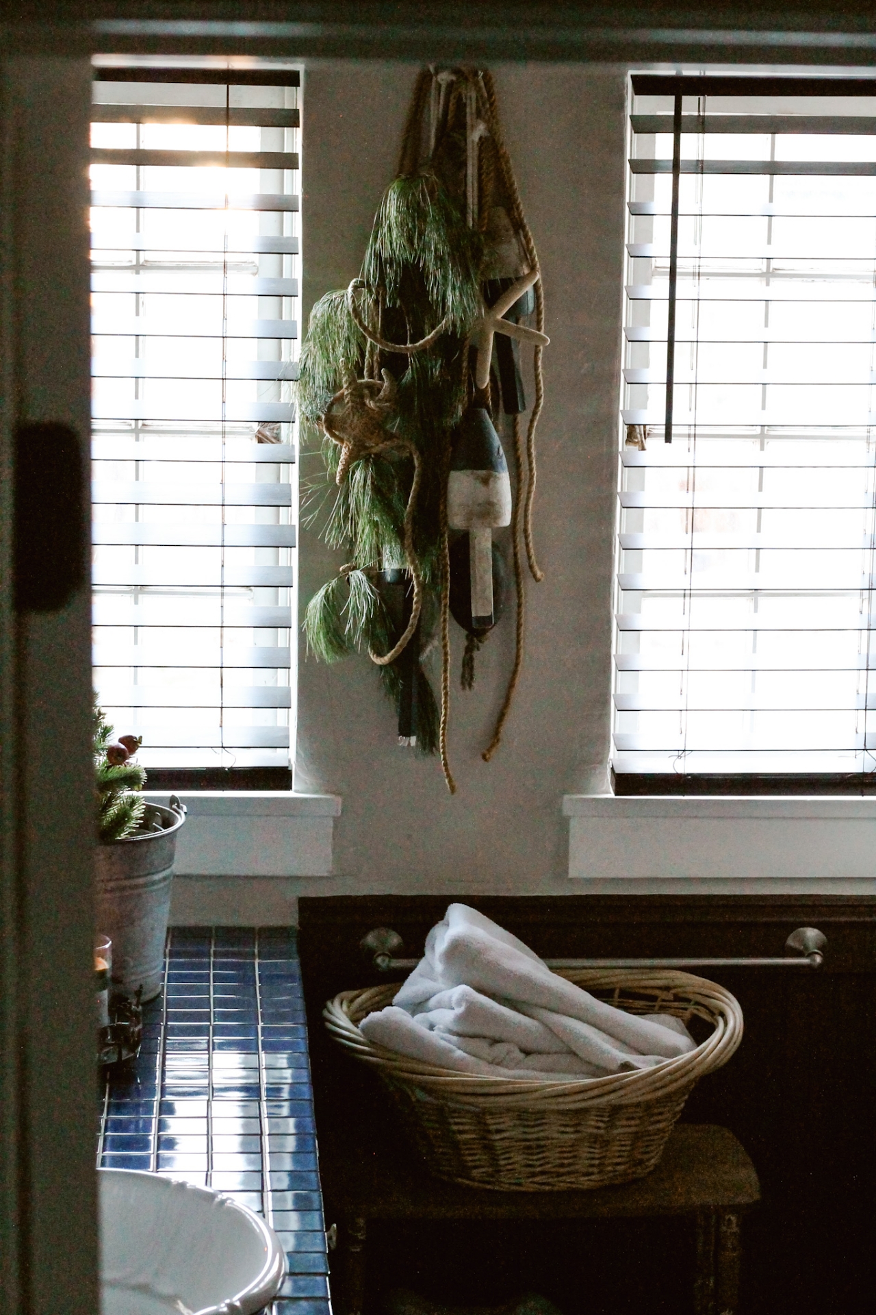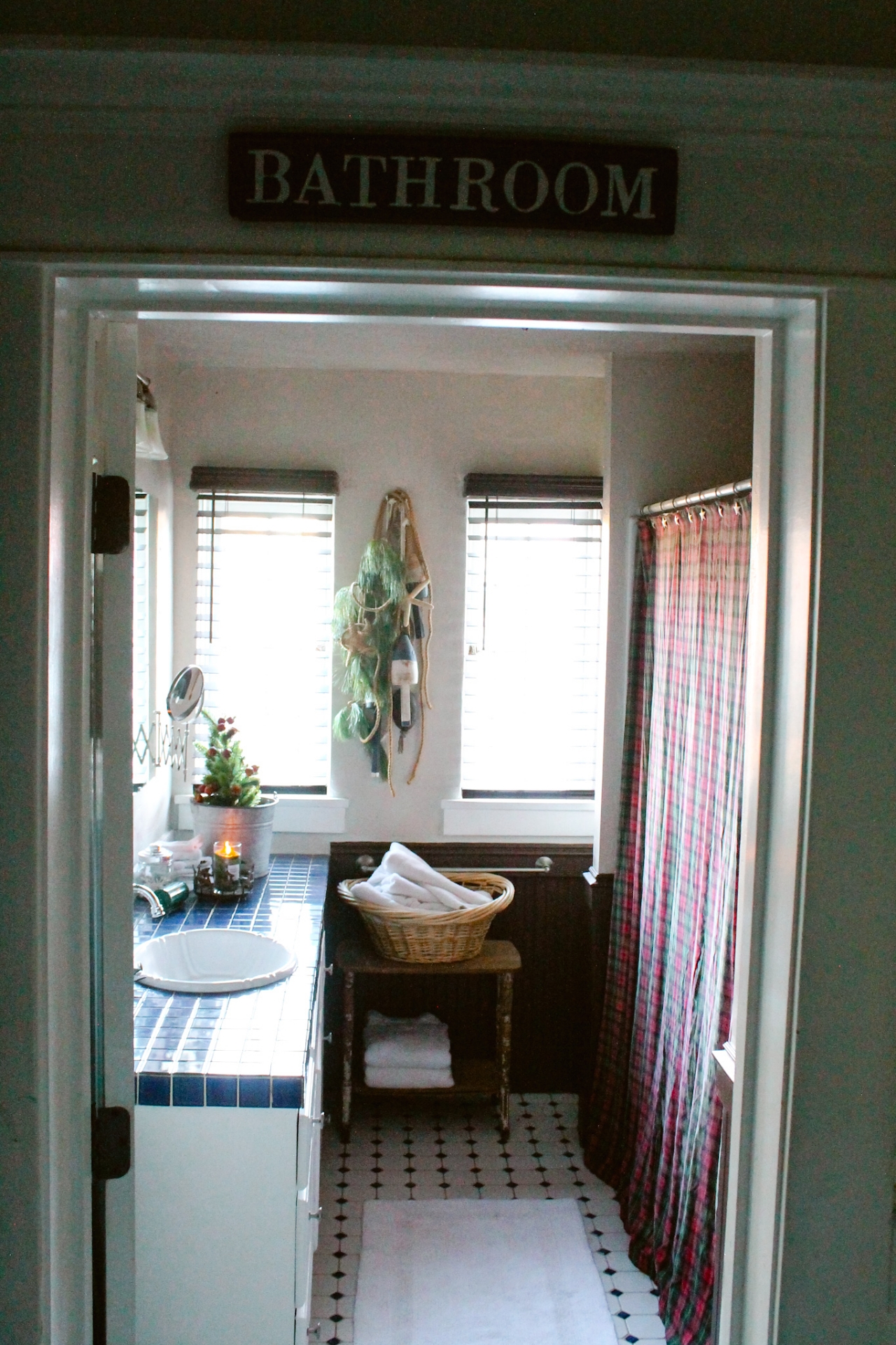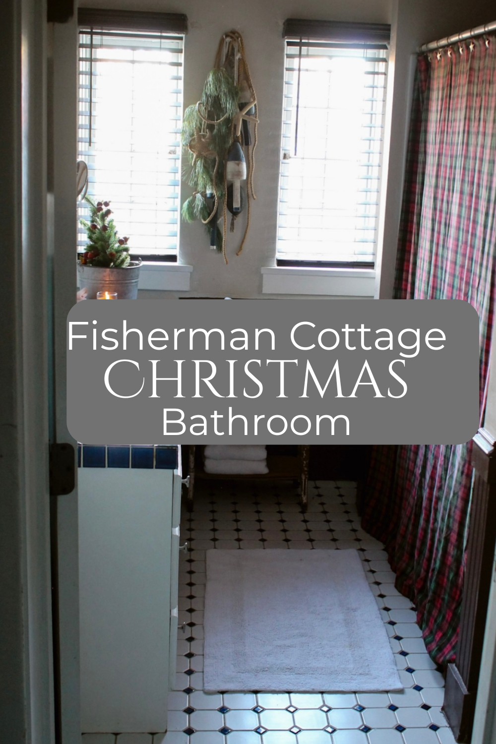 Because this bathroom already had a Nautical/Fisherman Cottage look to it, I wanted to keep that look but incorporate a little touch of Christmas in with it.