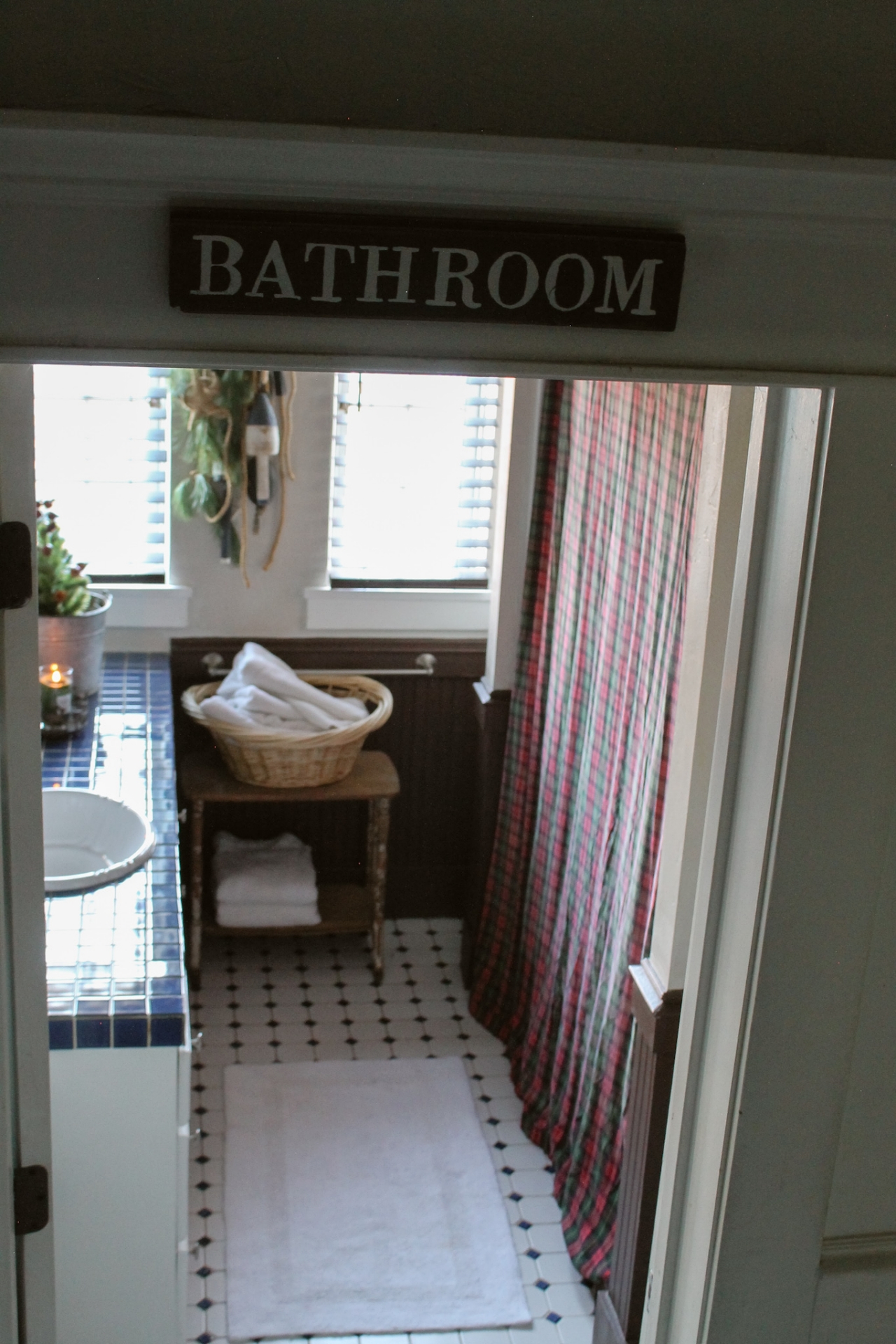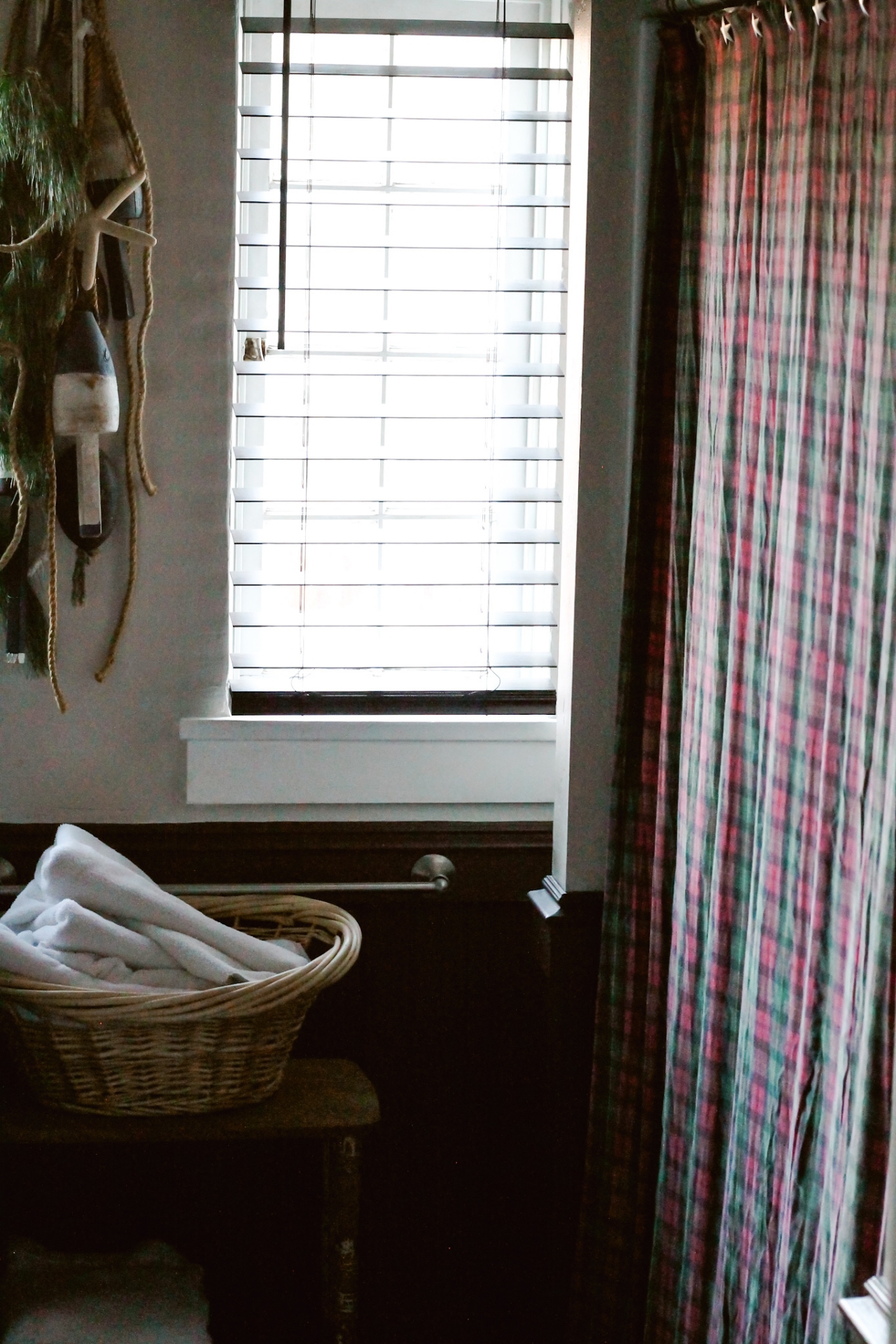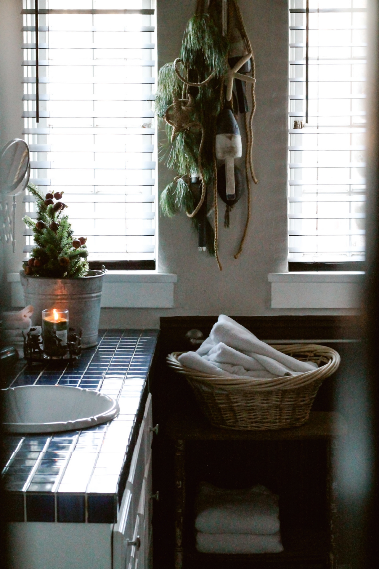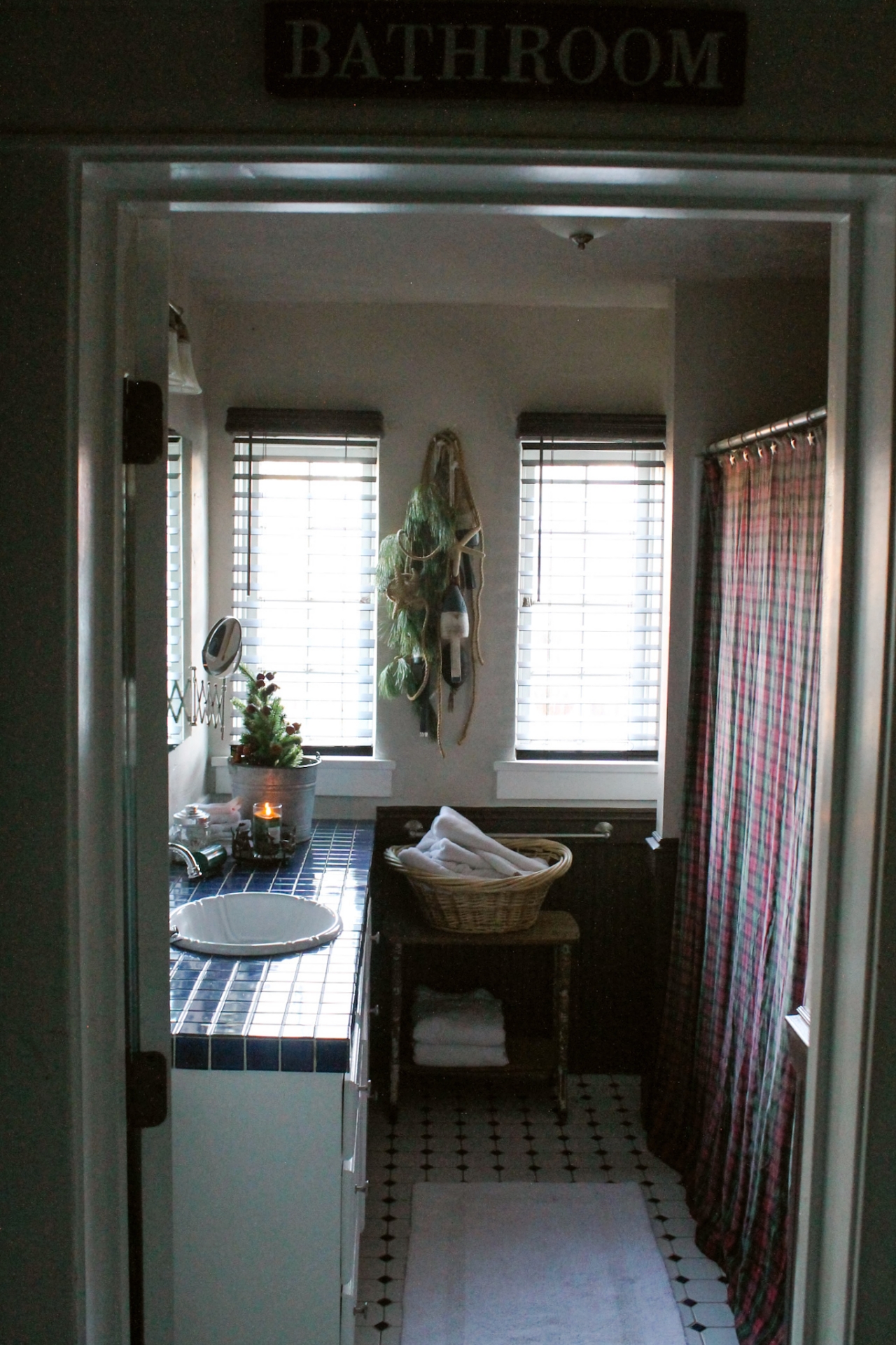 Because this bathroom already had a Nautical/Fisherman Cottage look to it, I wanted to keep that look but incorporate a little touch of Christmas in with it.