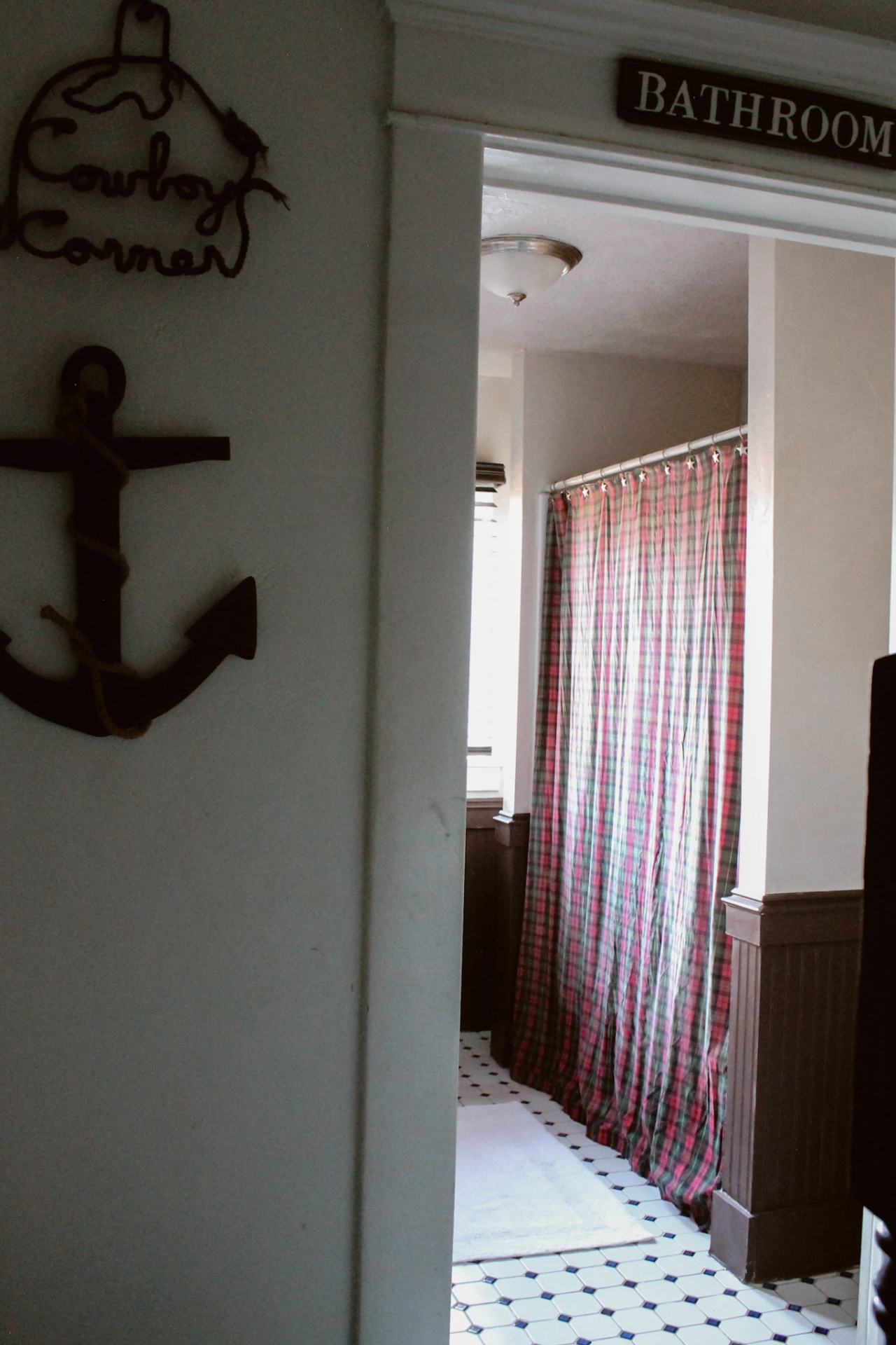 I hand made the Bathroom sign years ago. You can read more about how I made it HERE. I think it’s fun having it hanging above the door.