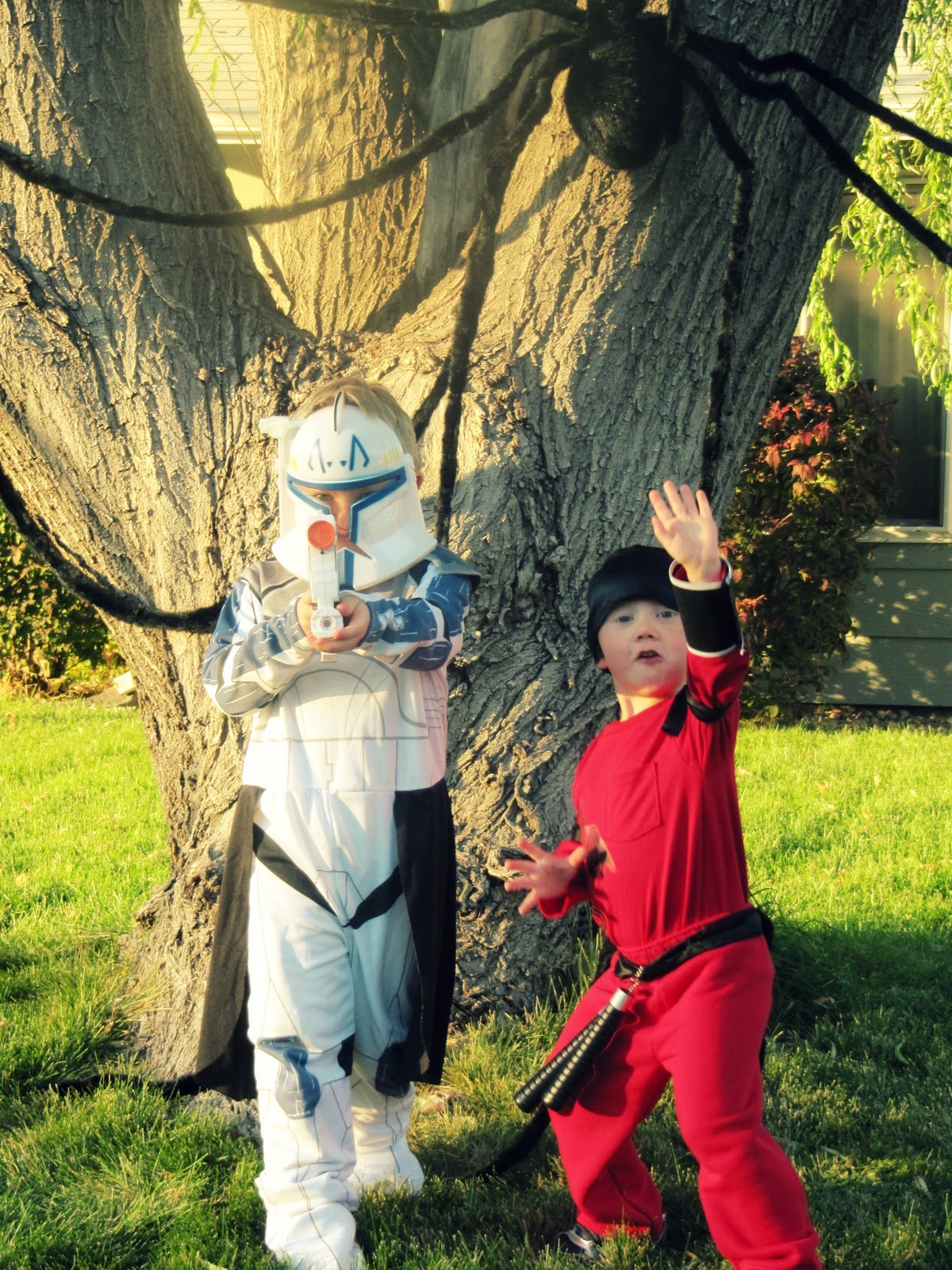 This Year, Liam was dressed as Captain Rex (Star Wars) and Jax was a Ninja Go (Lego’s)