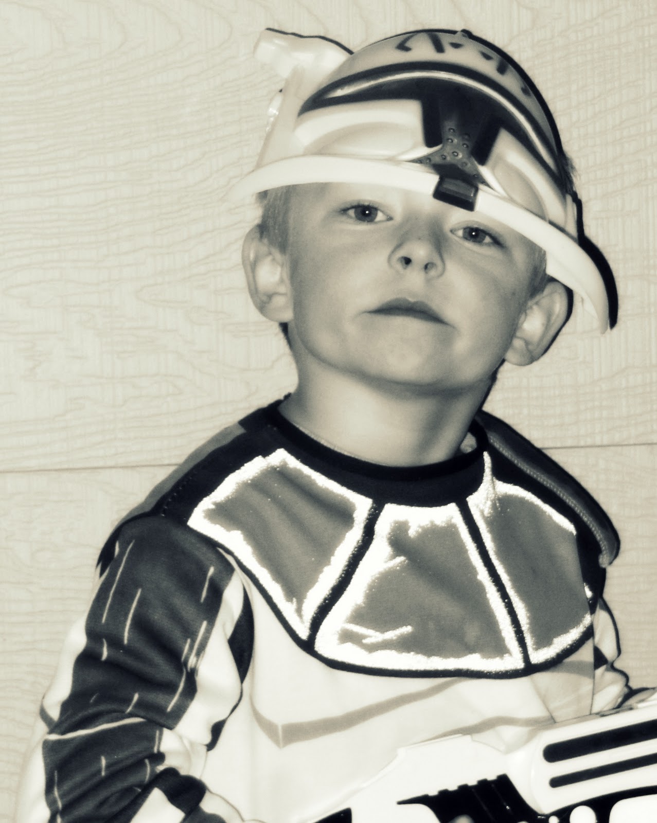 Originally we were going to be a Ninja Family, remember in my last post, even Abby the dog was a Ninja. But then Liam decided he really wanted to be Captain Rex instead. And That was Totally Okay.