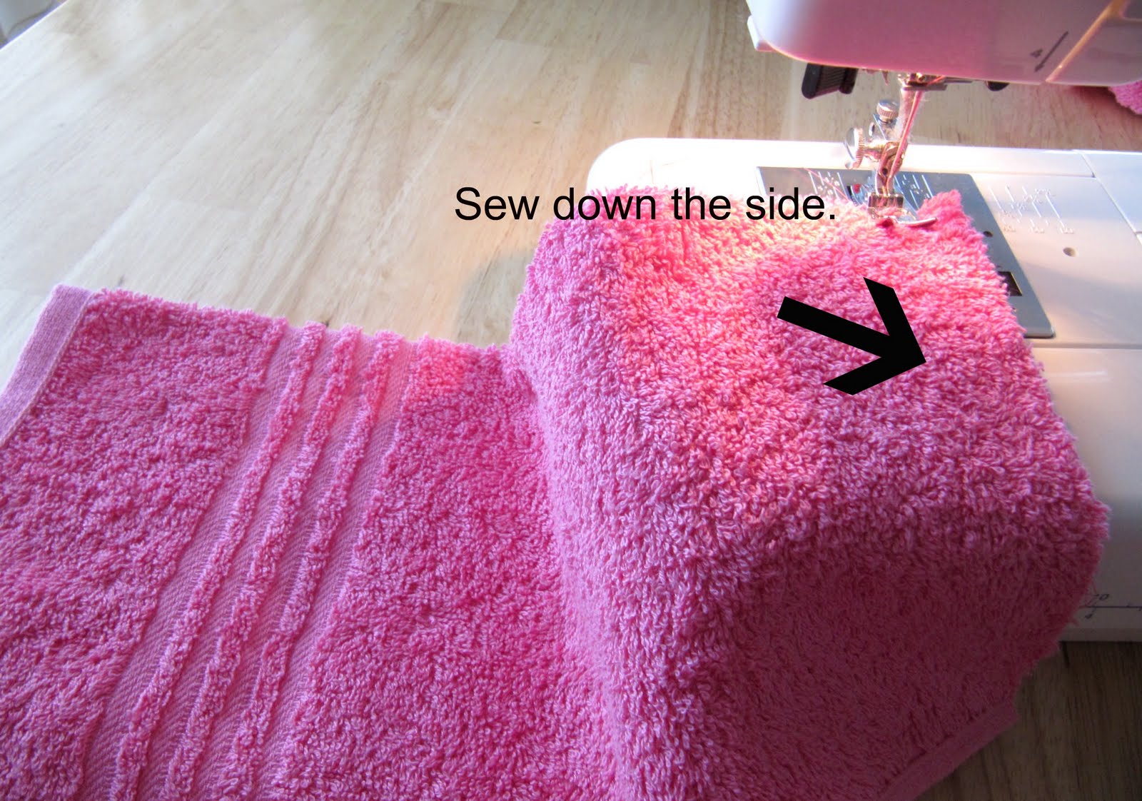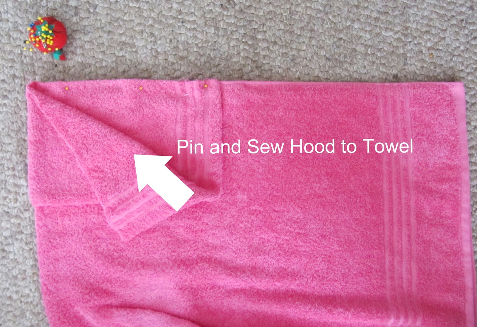 You’re going to sew the hood onto the bath towel.
