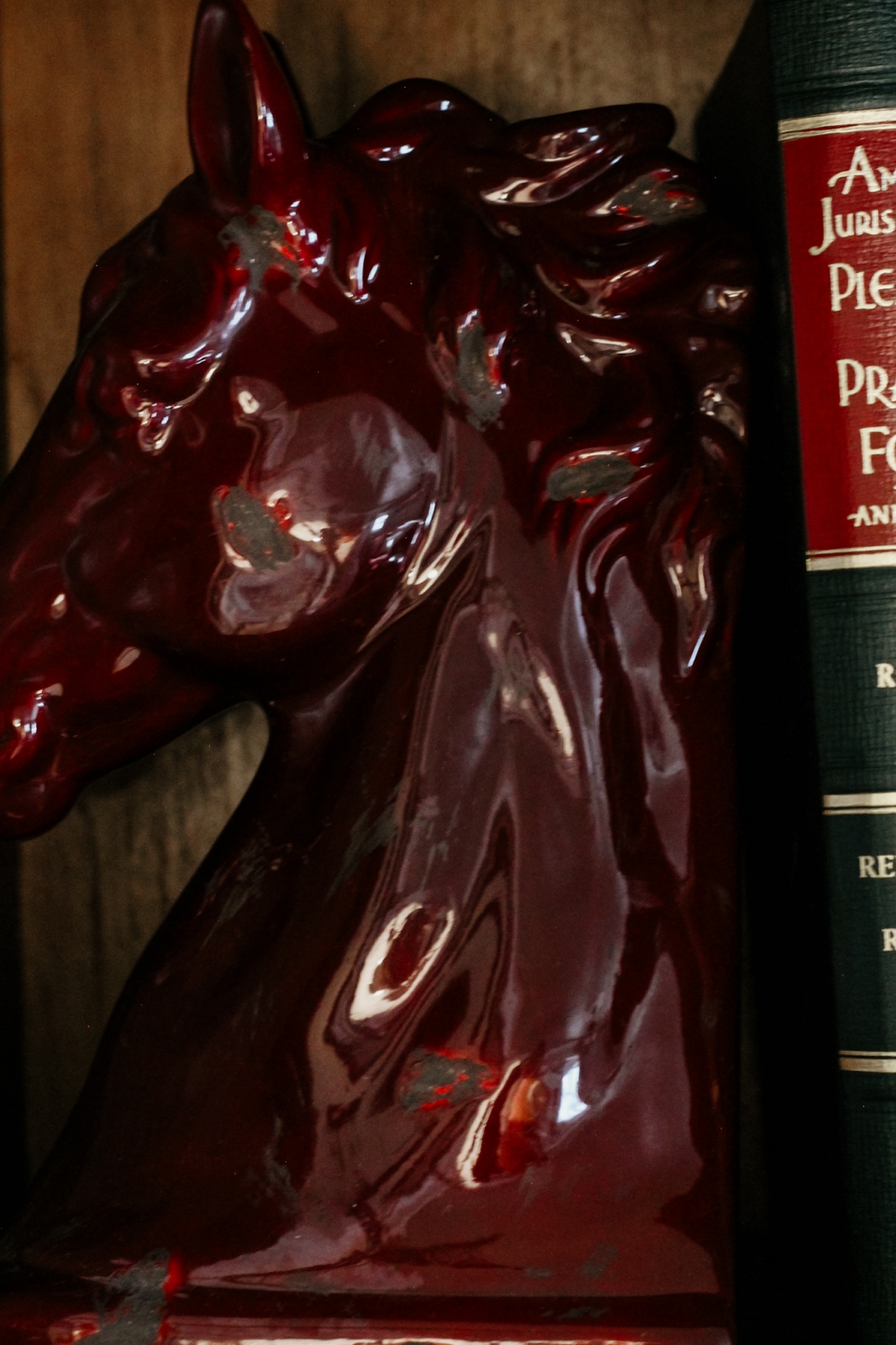 You might have missed the second pair of horse bookends in my living room photos. These ones have a glossy red finish, which makes them blend a bit with the wood background. I’m thinking of moving them to another spot in our home (maybe on the white bookshelves) so they can really stand out and be seen better.