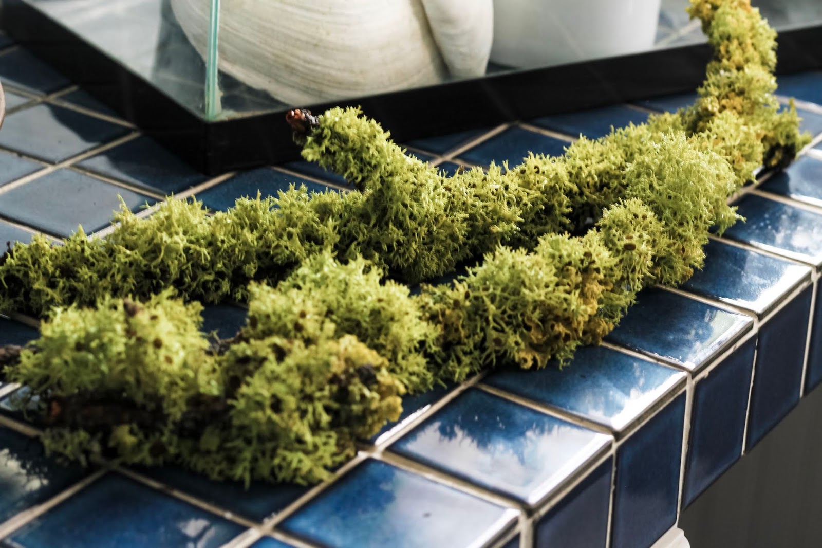 I guess I should also mention that this water garden is sitting on the counter in our main bathroom. Which is probably another reason why my moss is doing so well.
