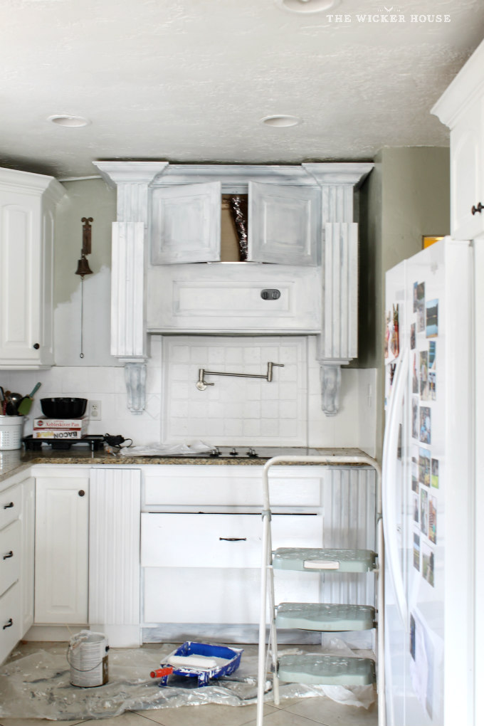 I painted our wood range hood mount! But I bet you already knew it was coming, didn’t ya? It was just a matter of time before I got the guts to do it.