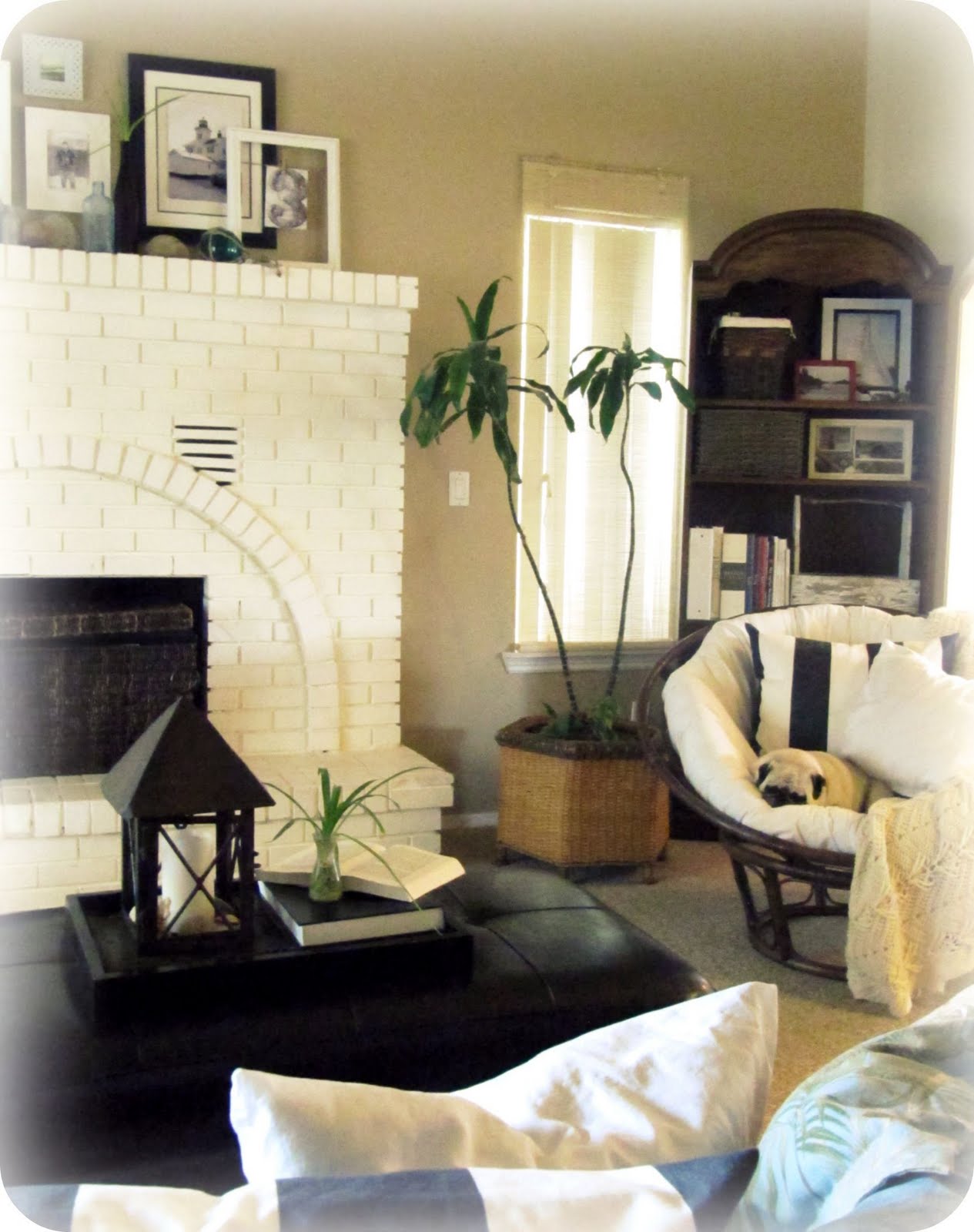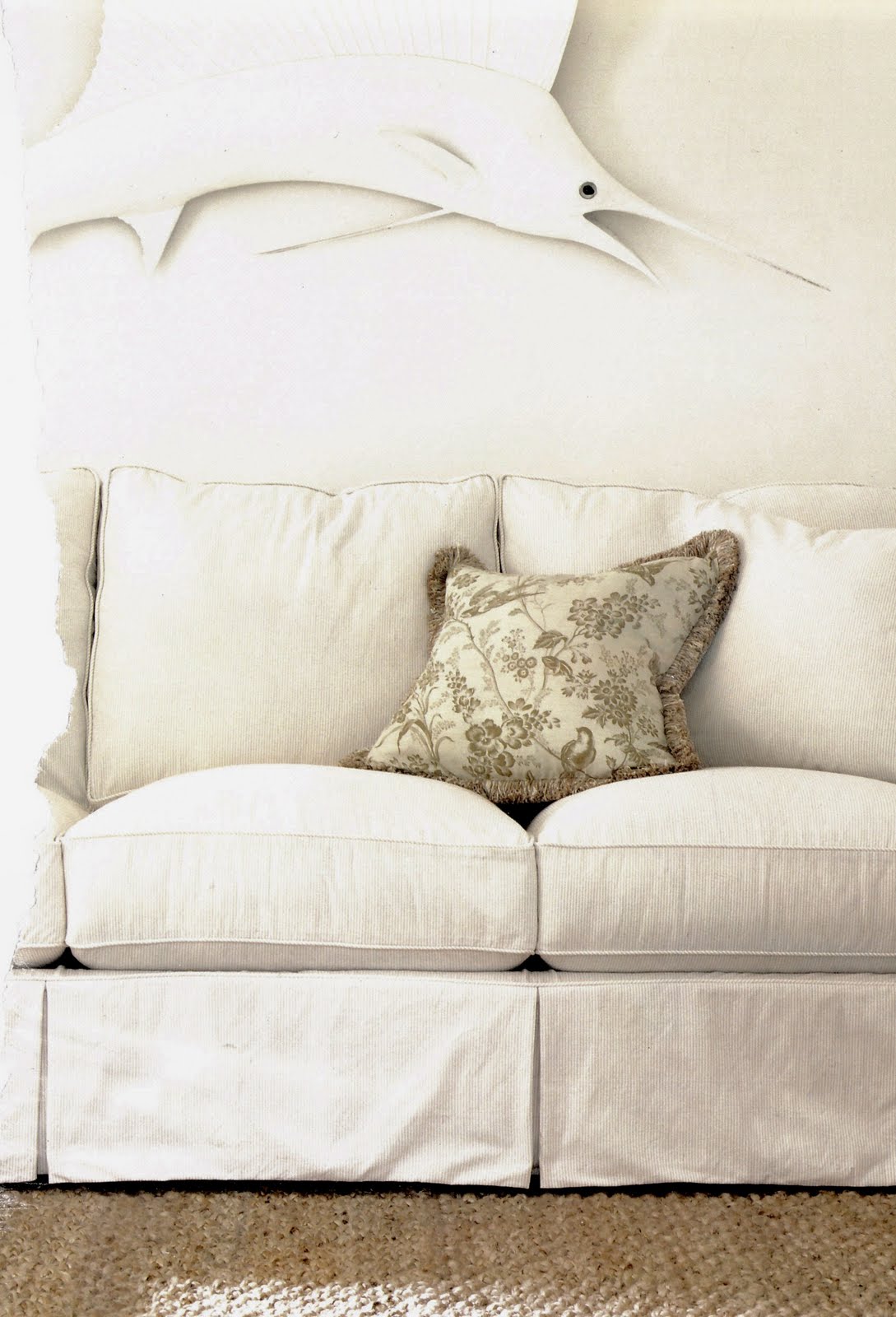 Ah, just paint the Marlin white already! See how long it takes for Jake to notice. I really like your "neutral" side of the room. Heaven knows I'm not afraid of color (we're painting our main level 'Celery Green') but there is something so fresh and calming about white/cream/tan colored rooms. If I thought I could keep them clean (which I would never be able to) I'd absolutely buy white sofas.