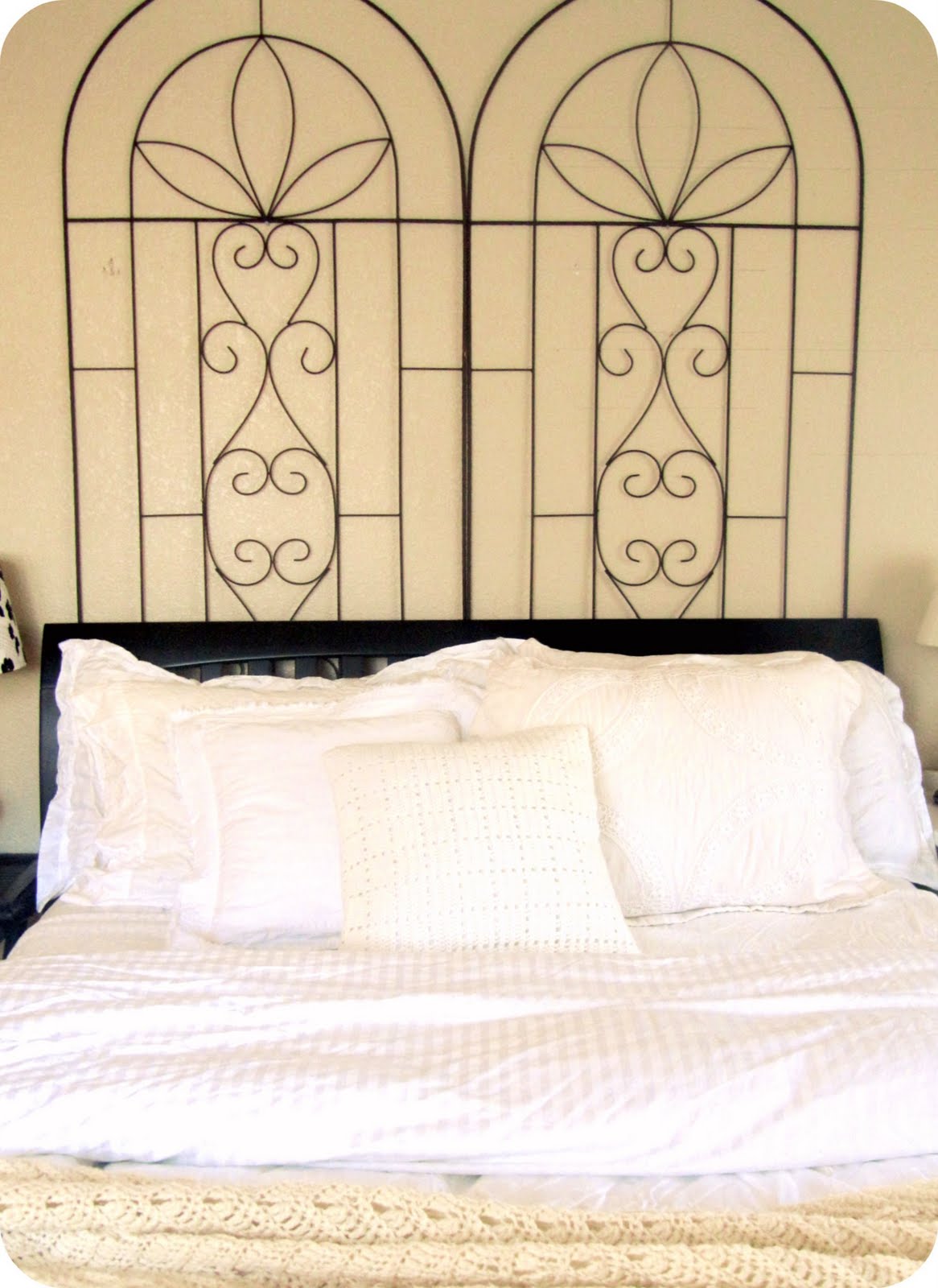 Also, I thought I’d show off what I’ve done to the wall above my bed this time. I know, I know, I keep changing it. Here I just brought in some trellis from the garden. And Again it’s just temporary, I still plan to remodel the bedroom in the near future. I think eventually I want some painted shutters above the bed.
