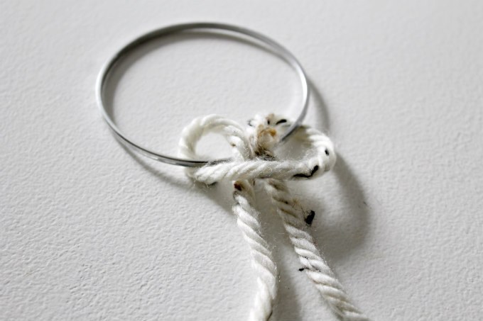 First, I started off with some inexpensive metal bracelets. I used bracelets because that’s what I had on hand.  Any type of large ring or hoop will work just fine.