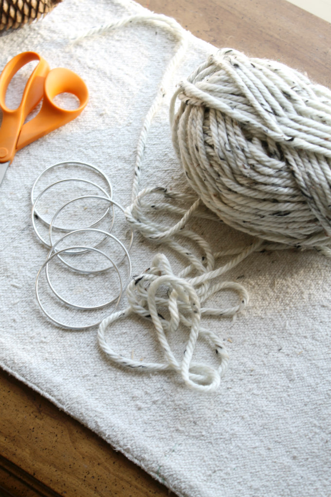 First, I started off with some inexpensive metal bracelets. I used bracelets because that’s what I had on hand.  Any type of large ring or hoop will work just fine.