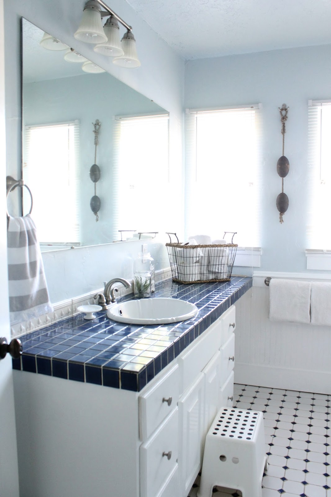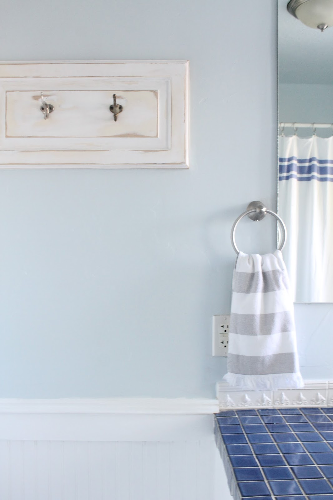 The paint freshened this room up so much and I think it harmonizes with the blue tile nicely.