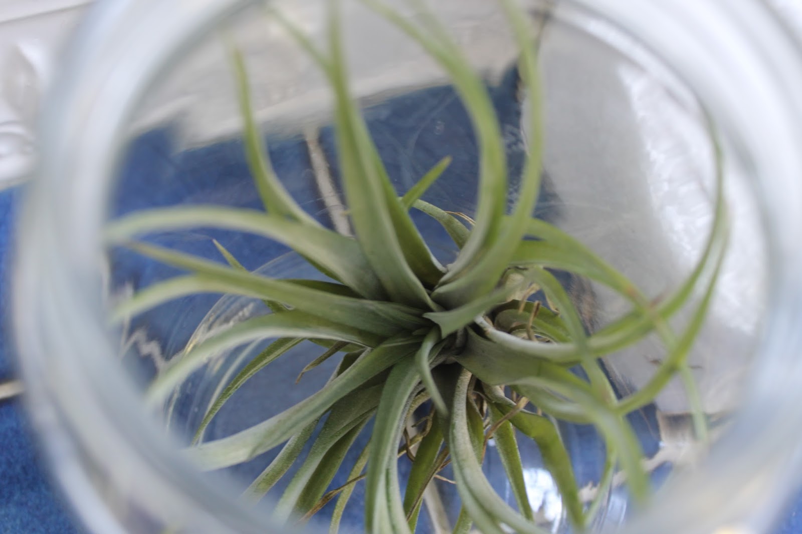 On the vanity I have a couple of jars, one is holding bath salts, while the other has an air plant inside of it.  I picked the air plant up in a souvenir shop on our last trip to the coast.  I think it is so cool, and now I want several more of them.