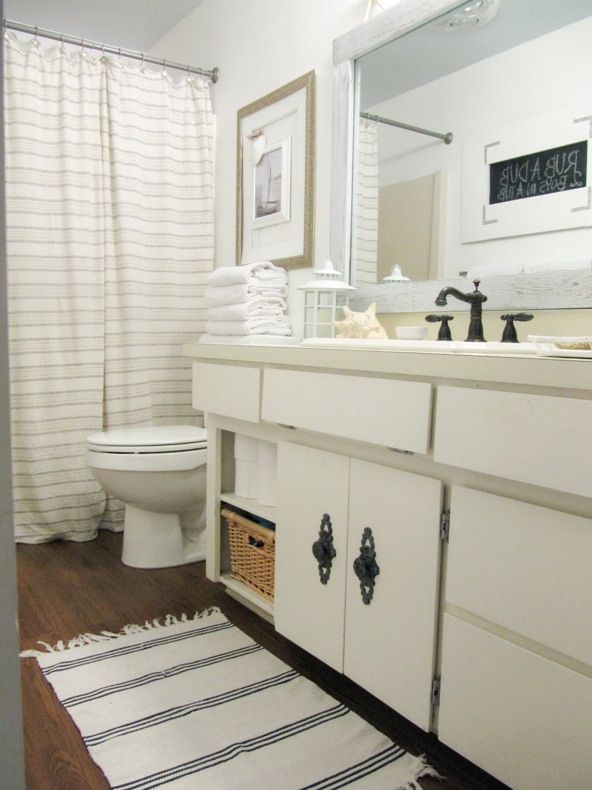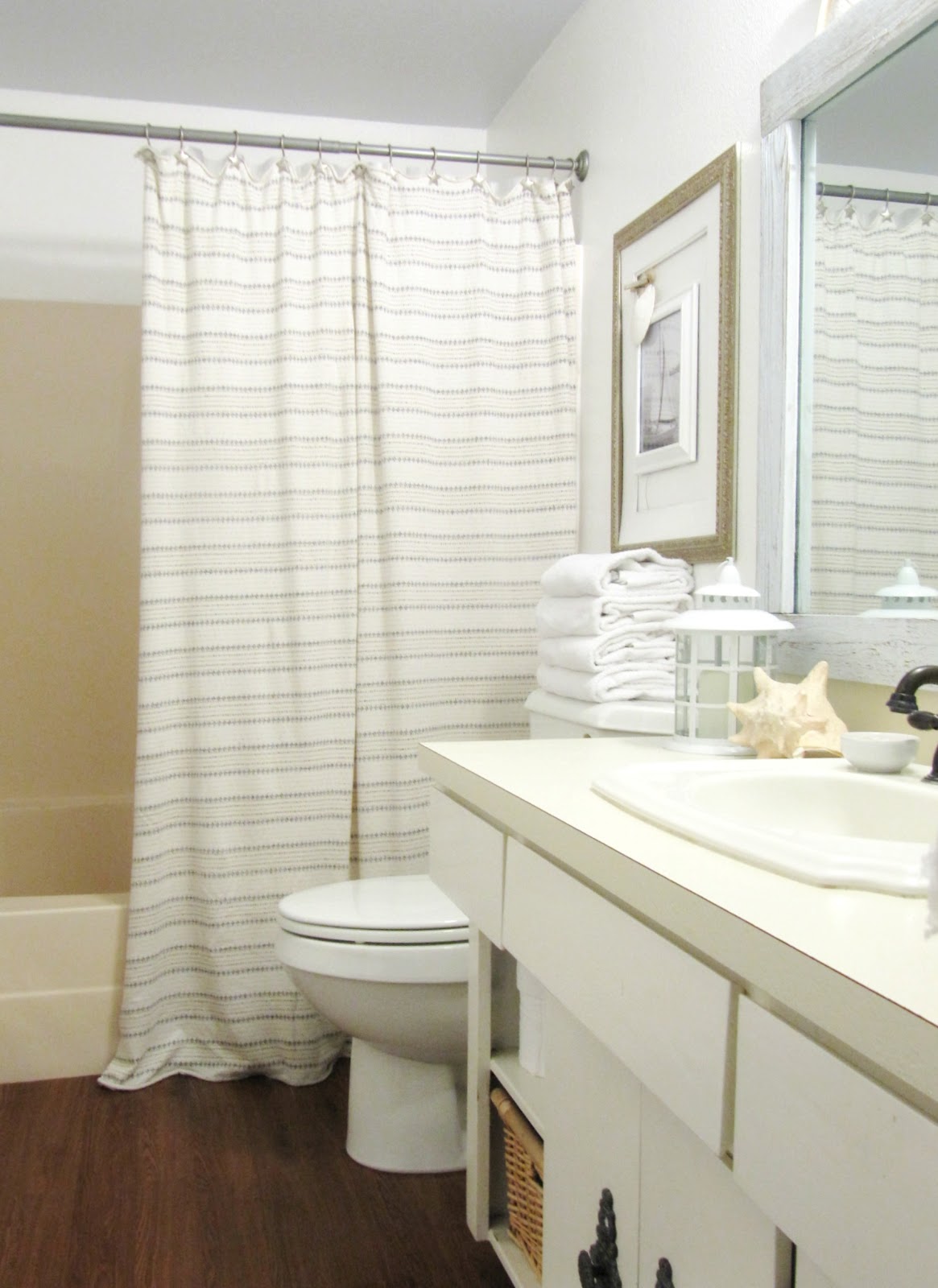 I think my favorite part is the barn wood frame around the mirror. I've been walking around my house, wondering where I can do that! I love how you made the bathroom so much lighter and brighter!