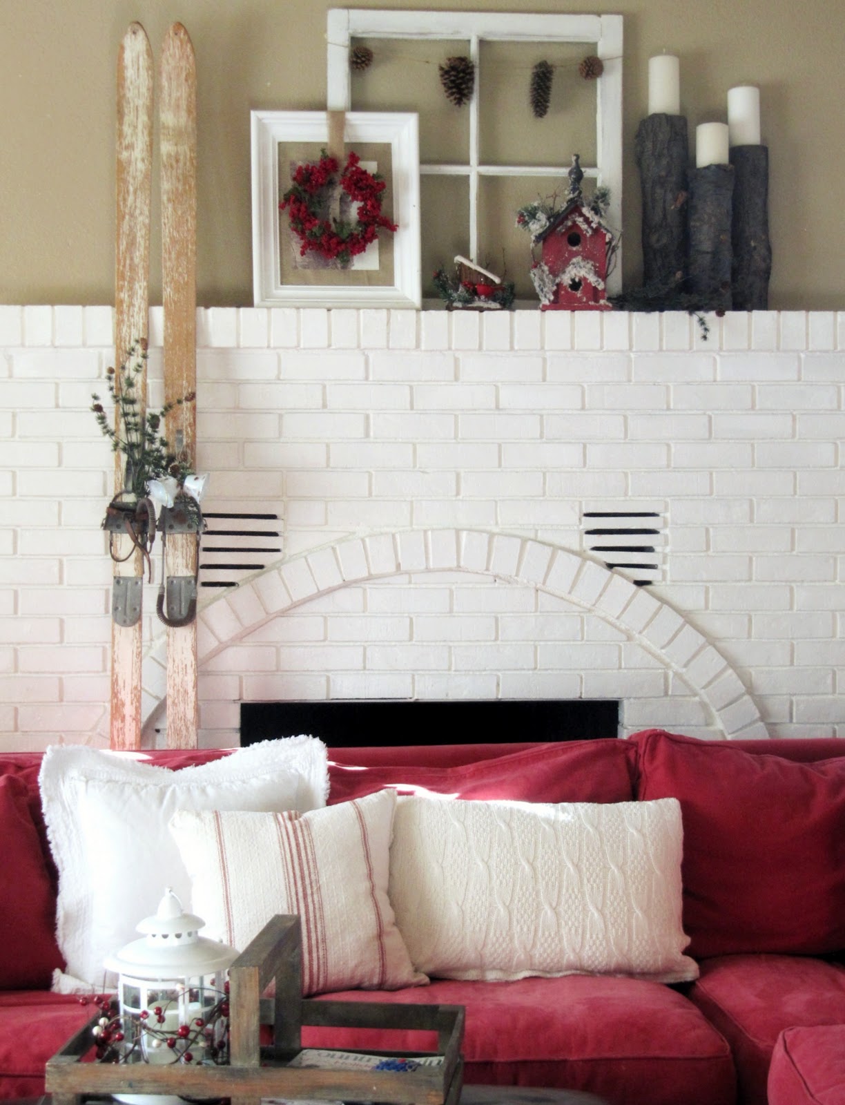 I sure have fun decorating my house for the Holiday Season. This year I was going for a Winter Cottage look. I tried to keep it simple and natural. I think the only thing New this year is the red snowy birdhouse I found on sale at hobby lobby.