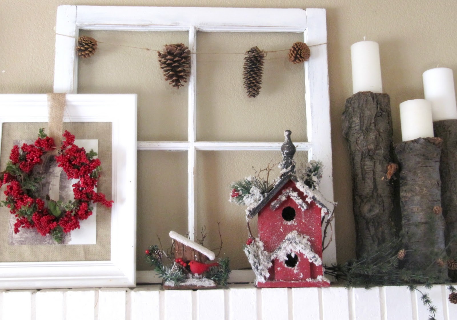 I love your Christmas decorating, especially the pine cones strung through the window. You are truly talented.