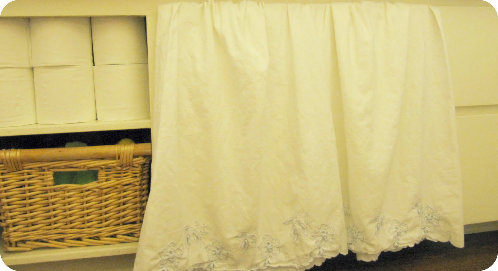 SO CUTE!!! Oh my gosh, you are a busy girl aren't you 🙂 I LOVE IT!! I think the toilet paper holder in the wall and the tp-basket-storage in the cupboards are my favorite! I also LOVE the sink curtain and can't wait to read the post on that idea. It was cute before, but now it looks so crisp and clean and even a touch elegant without being over the top! LOVE IT!! 🙂