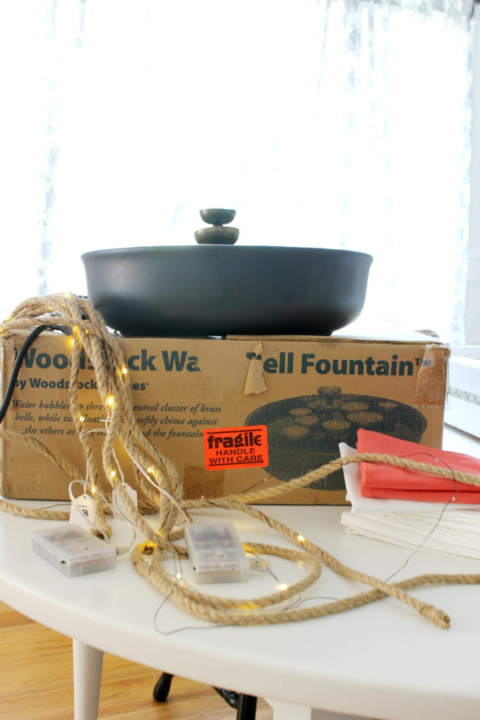 Your finds are so great, I wish they had yard sales here where I live, there is no such thing, lol. I love the fountain and the rope lights look great in your chimney!