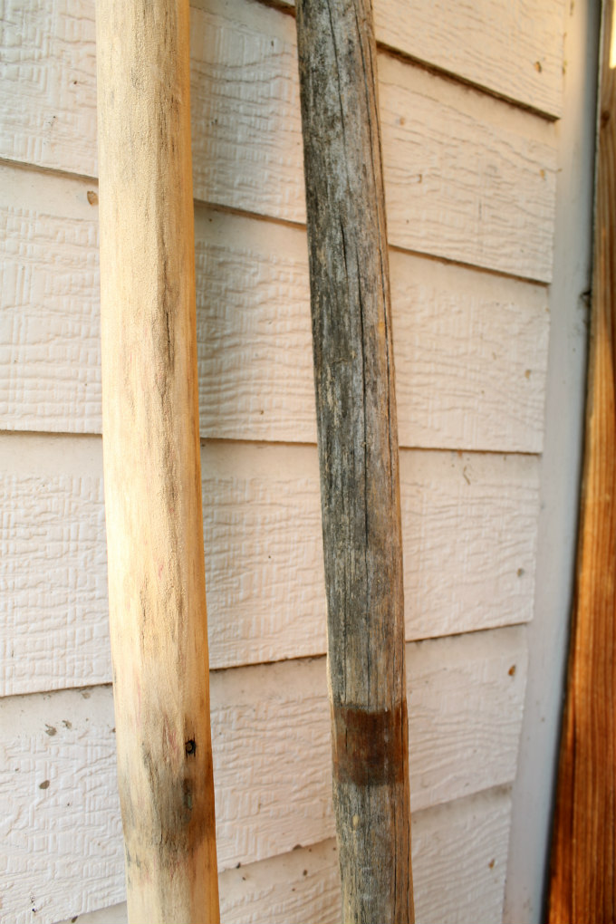 The oars got a pretty makeover. Mostly they just needed to be sanded down.  Look at the difference sanding them made! The oar on the left is obviously the one I sanded and the oar on the right is the before.